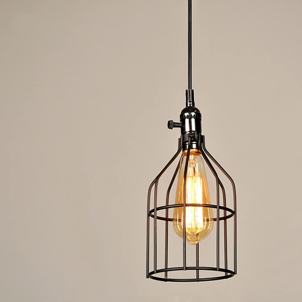 Black Iron Metal Cage Pendant Light – Retro Industrial Hanging Lamp