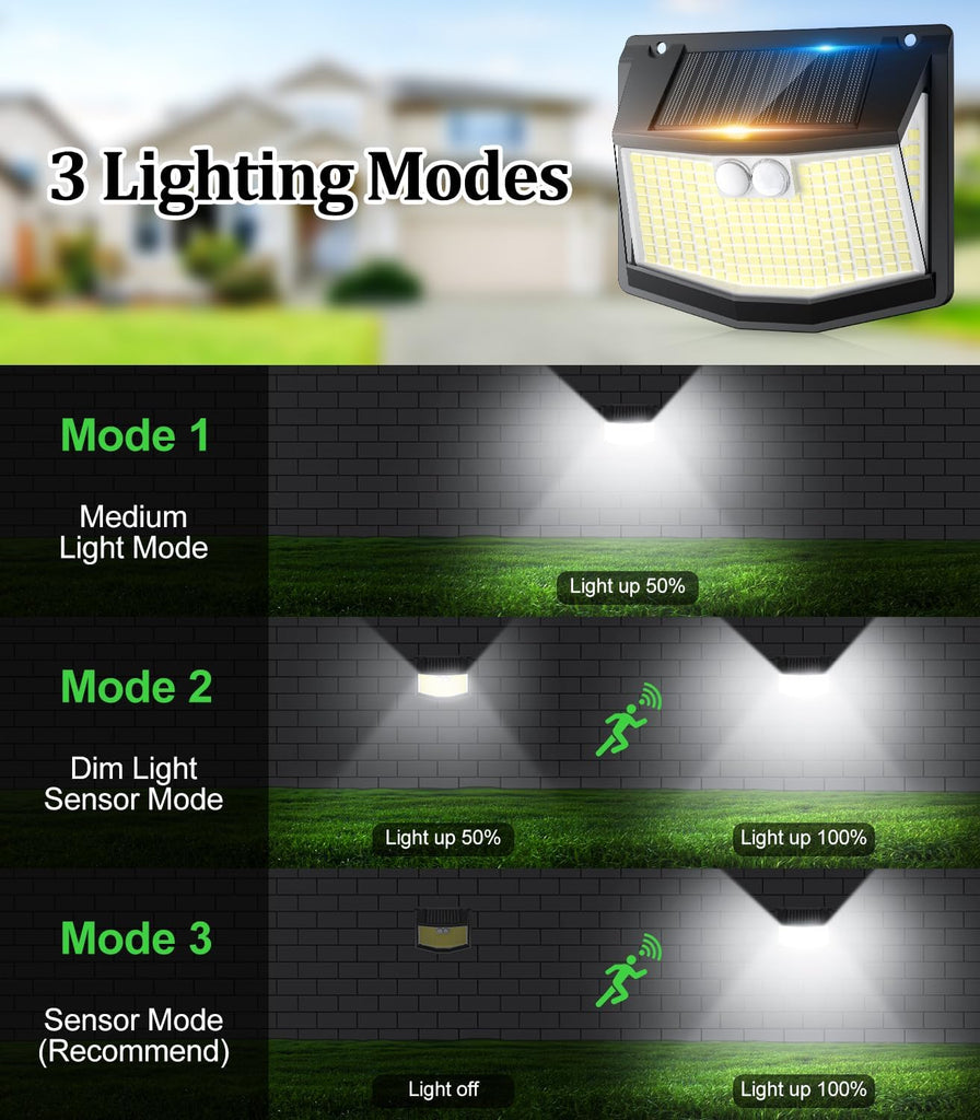 ✅ Three lighting modes: Motion Sensor, Dim Light + Motion Sensor, Constant Light