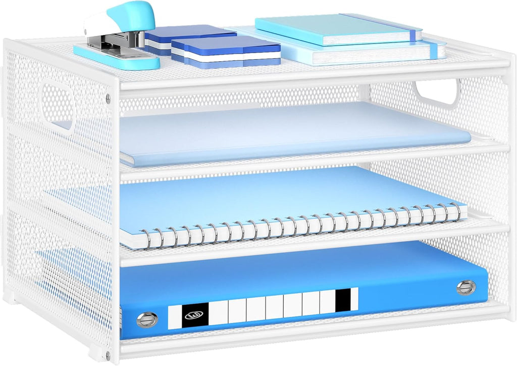 4-Tier Mesh Desk Organiser with Handle – Letter Tray & Magazine File Holder, White