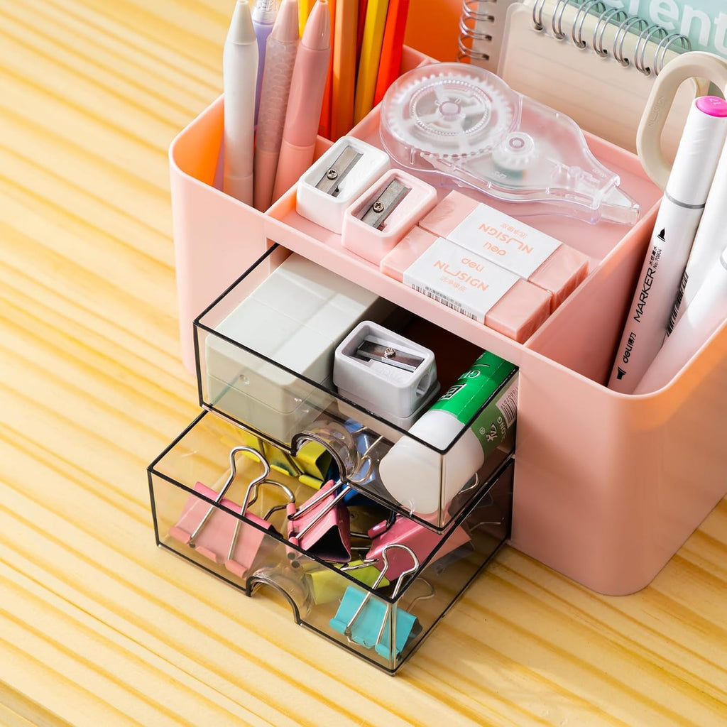 Keep your workspace tidy and stylish with this 7-Grid Creative Desk Organiser with Drawer in elegant pink. Designed for both practicality and charm, this multifunctional organiser offers a smart way to store pens, pencils, scissors, clips, and other small stationery items. The compact structure features seven separate compartments, including a pull-out drawer, providing ample space to keep your desk essentials neat and easily accessible.