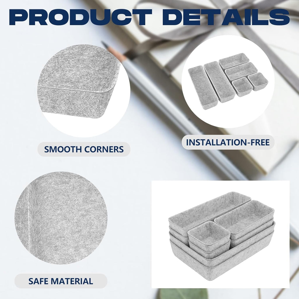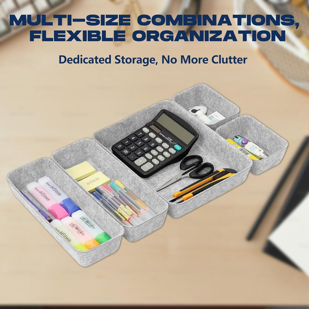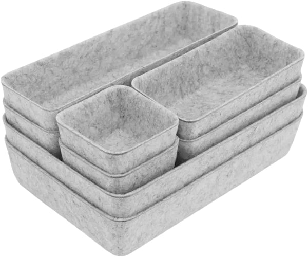 The 8-Piece Eco-Friendly Felt Drawer Organiser Set is designed to help you keep your space neat, tidy, and well-structured. Made from high-quality, eco-friendly felt material, these lightweight yet durable organisers are ideal for sorting and storing a variety of items. Whether used in a desk, makeup vanity, wardrobe, or kitchen drawers, they make it easy to create a clean and organized layout. The soft felt fabric protects delicate items from scratches, while the stackable and portable design allows flexible use in any room. Perfect for cosmetics, stationery, accessories, or household essentials.