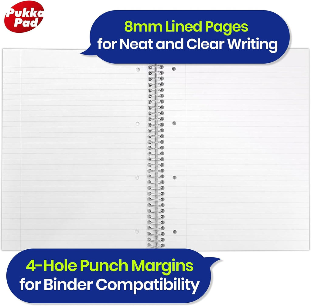 8mm lined pages with margins for neat, organized notes.