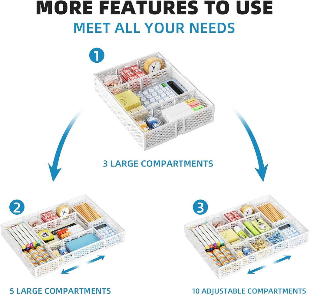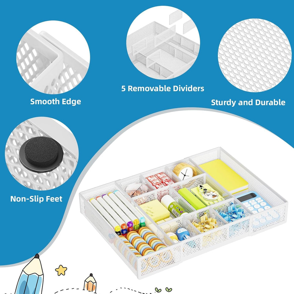 Desk Organiser with 10 Adjustable Mesh Tray Compartments – 5-Divider Drawer for Office & Home