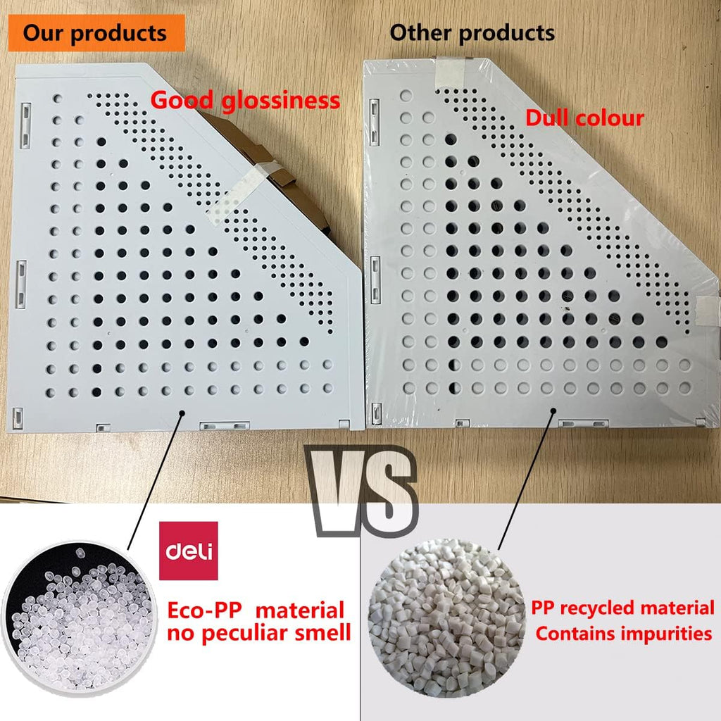Made from high-quality, durable plastic, the Deli file holder is lightweight yet sturdy, ensuring long-lasting performance in offices, classrooms, or home workspaces. The ventilated structure keeps your documents free from dust and moisture, while the open-top design provides quick access to your papers and folders. The modern light grey finish complements any décor, adding a sleek and tidy touch to your desk setup.