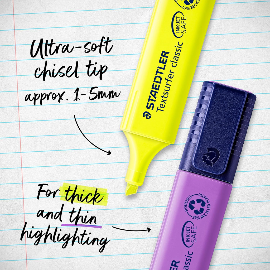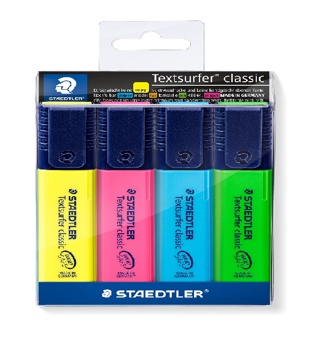 Make your notes and documents stand out with the Textsurfer Classic Highlighters. This pack of 4 assorted colours offers vibrant, fade-resistant ink designed for smooth and consistent highlighting on all types of paper.