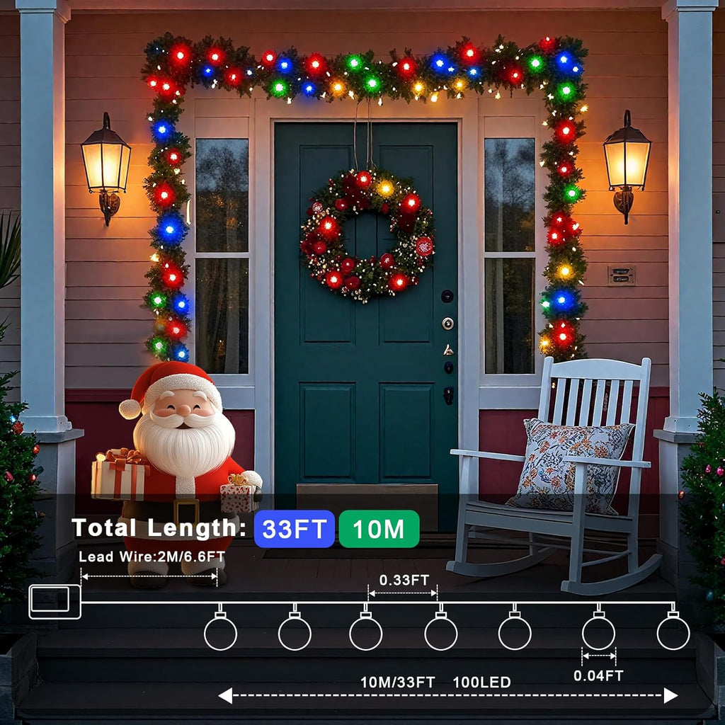 100 Bright Multicolor LEDs on a 12-meter string with globe-shaped bulbs