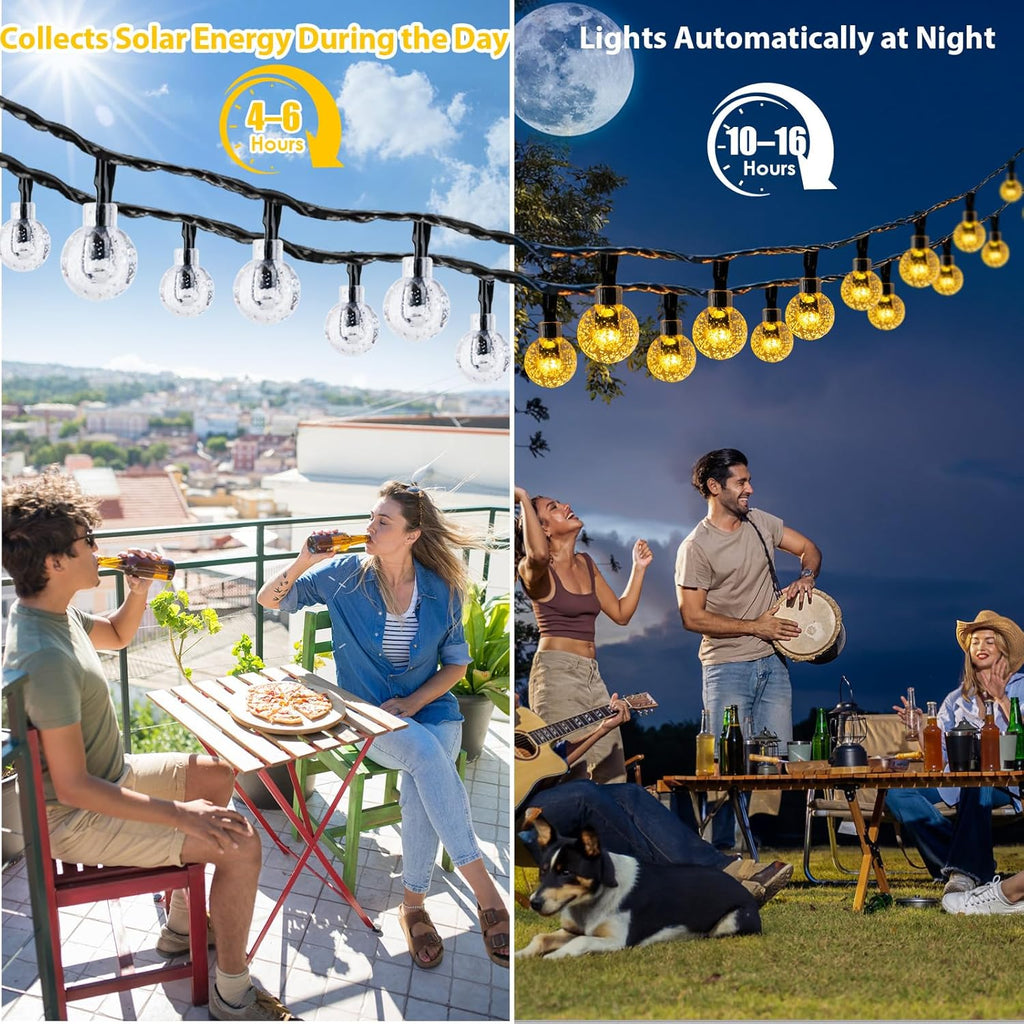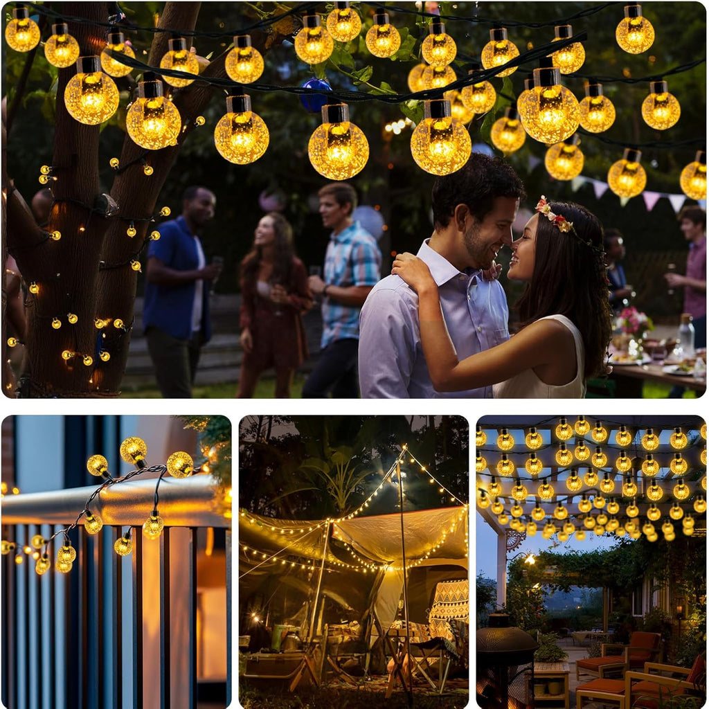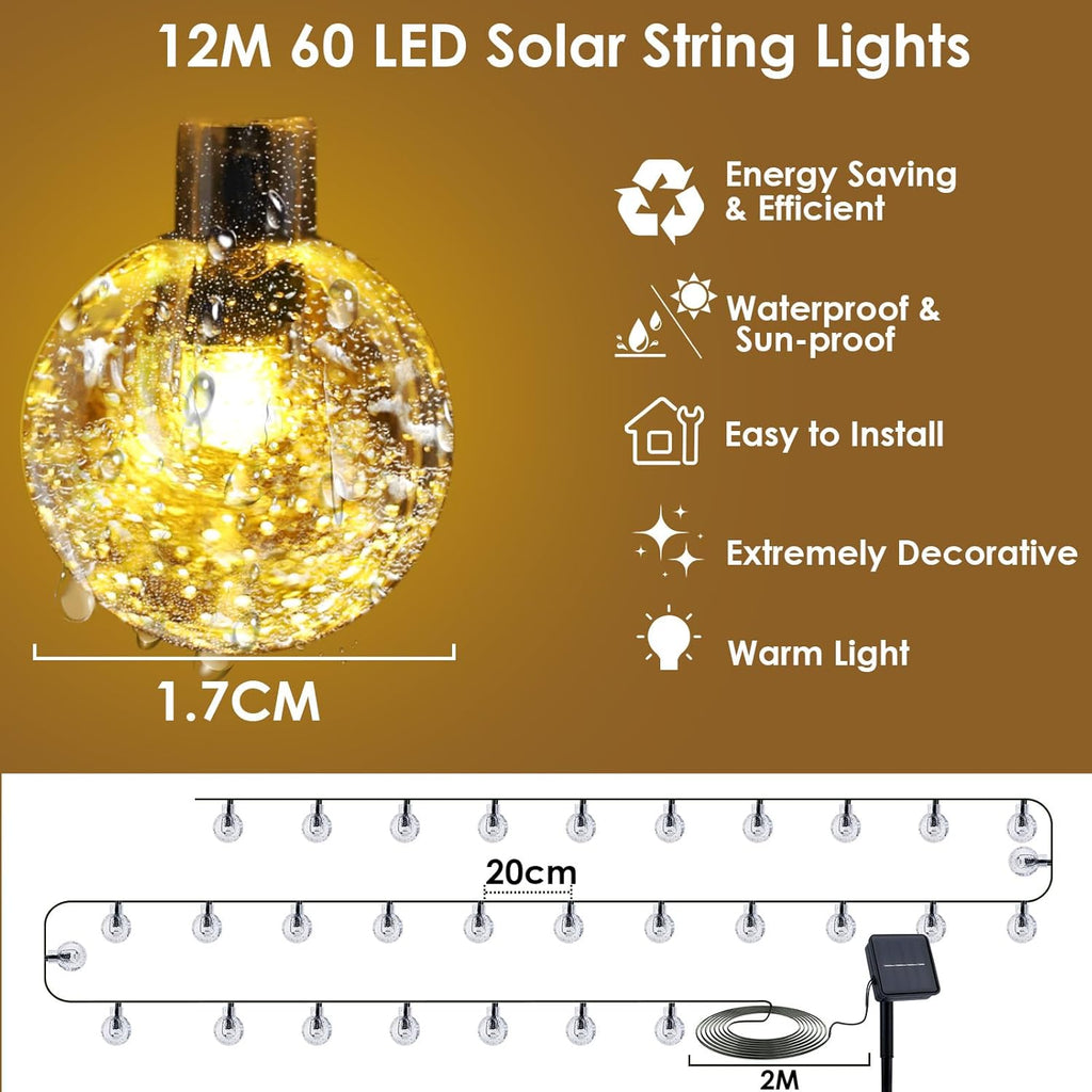 Transform your garden, patio, or outdoor space into a warm and enchanting oasis with these Solar Garden String Lights. Featuring 60 large crystal ball LEDs across a 12-meter length, these solar-powered fairy lights offer 8 dazzling lighting modes, durable IP65 waterproof design, and a high-efficiency solar panel for long-lasting use. Ideal for weddings, gazebos, balconies, or daily garden decor—effortless to install, endlessly charming.