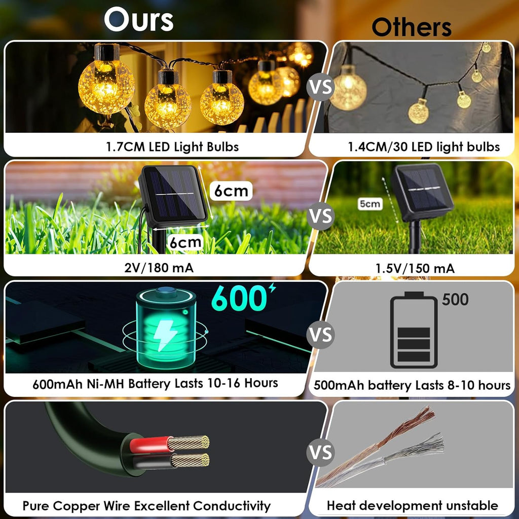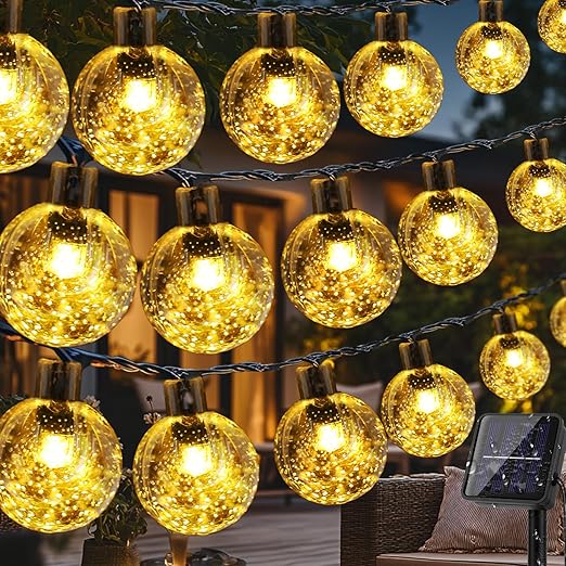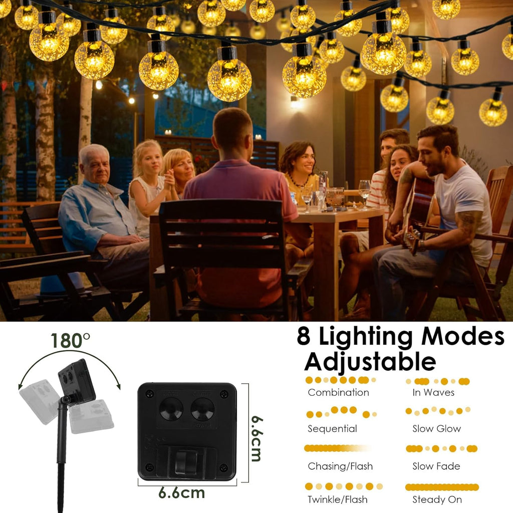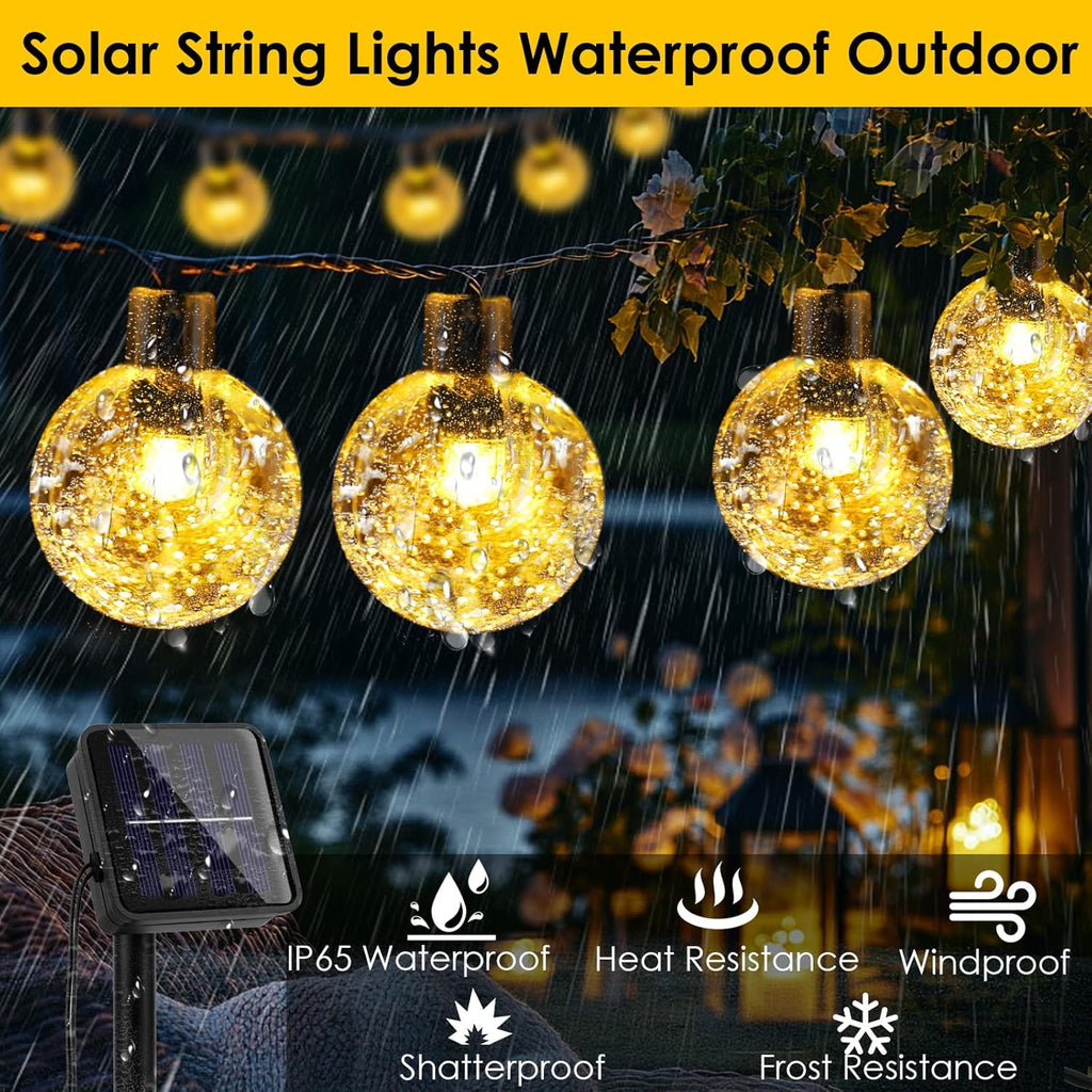 Transform your garden, patio, or outdoor space into a warm and enchanting oasis with these Solar Garden String Lights. Featuring 60 large crystal ball LEDs across a 12-meter length, these solar-powered fairy lights offer 8 dazzling lighting modes, durable IP65 waterproof design, and a high-efficiency solar panel for long-lasting use. Ideal for weddings, gazebos, balconies, or daily garden decor—effortless to install, endlessly charming.