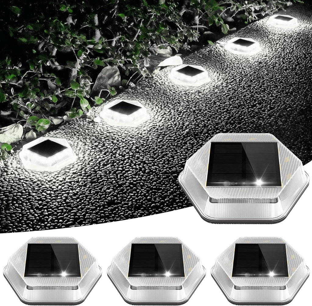 Enhance your outdoor spaces with the Solar Deck Lights (4 Pack) – designed to provide safe, stylish, and eco-friendly illumination for gardens, patios, pathways, fences, poolside areas, and sidewalks. With a cool white LED light, these disk-shaped solar lights create a clear, modern glow perfect for highlighting plants, landscaping, and building features.