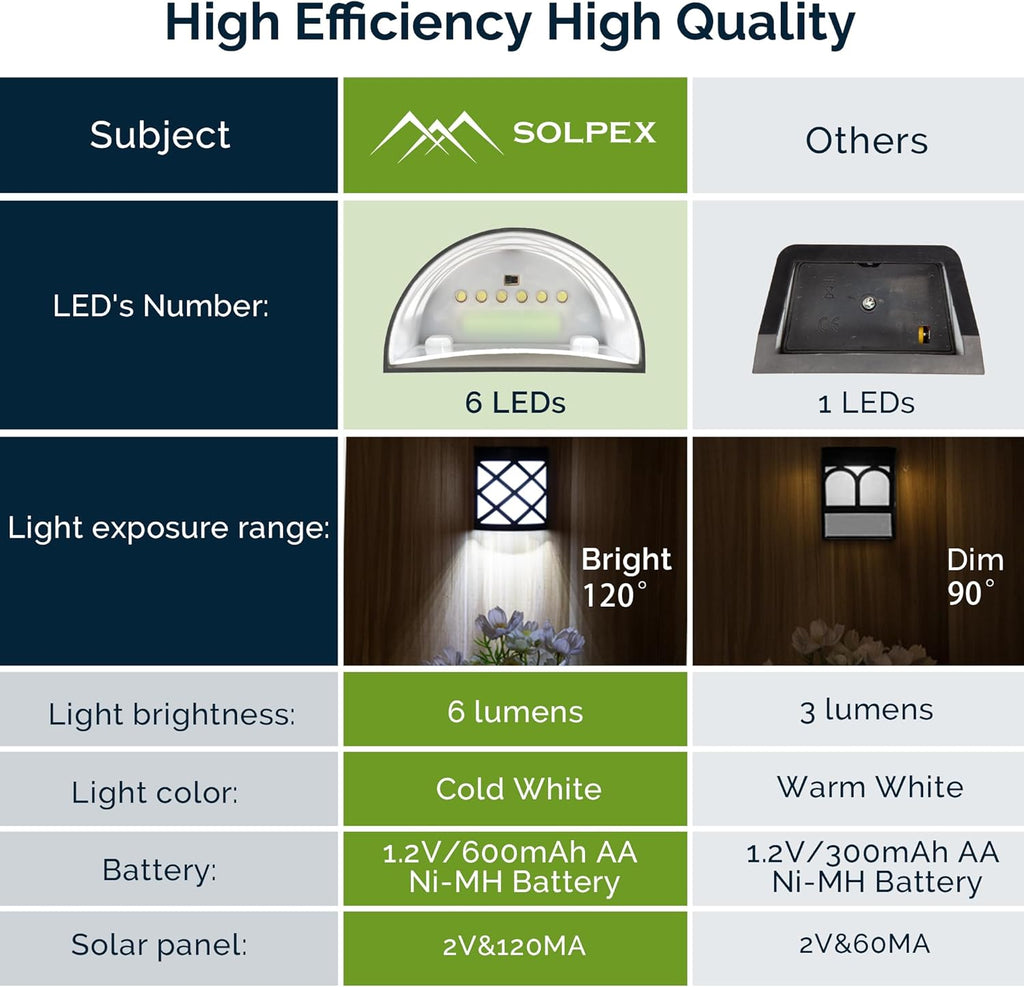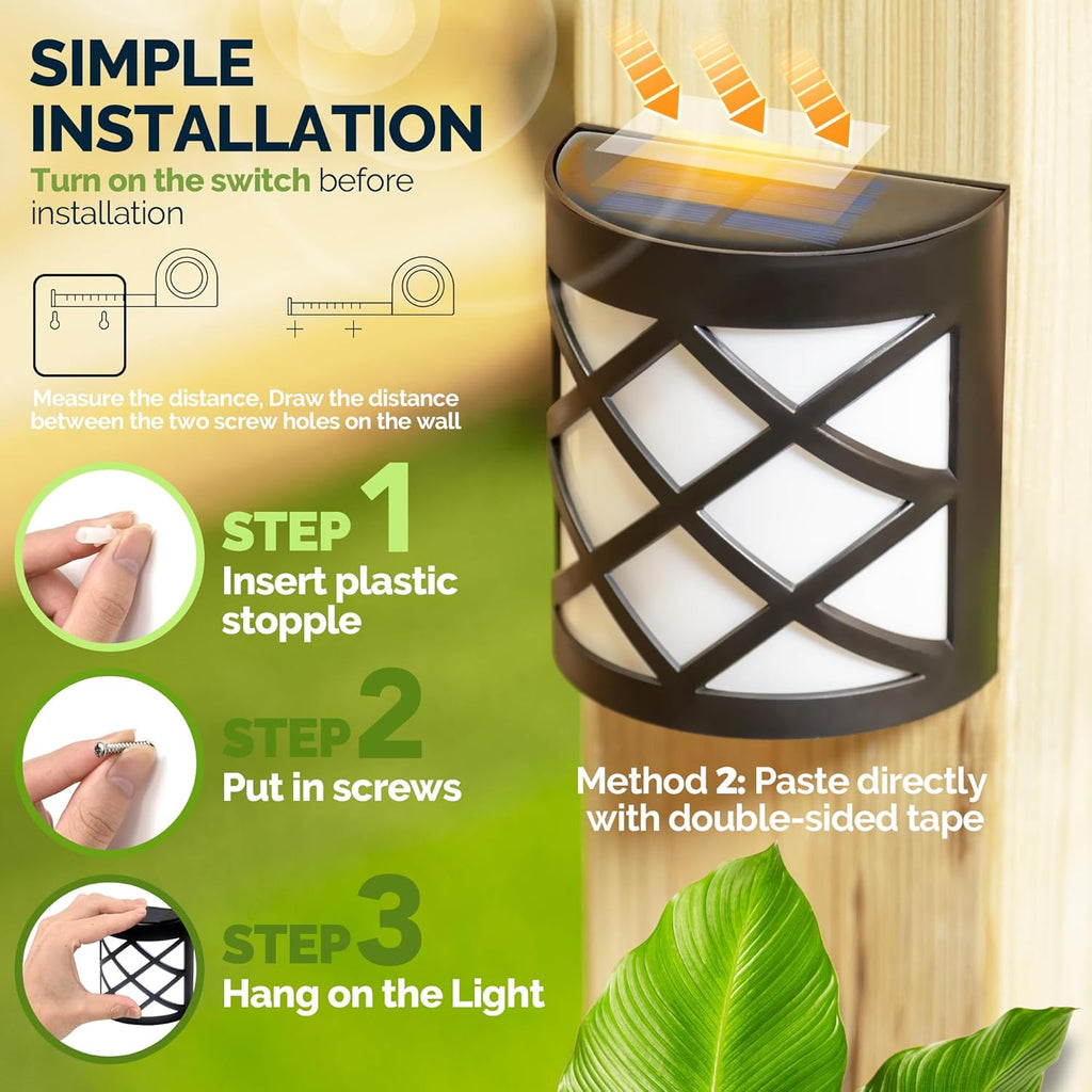 Brighten and decorate your outdoor spaces with the 4-Pack Solar Fence Lights, designed to provide both style and functionality. Each light features 6 energy-efficient LEDs in cold white, delivering clear illumination to fences, walls, decks, patios, stairs, and pathways.