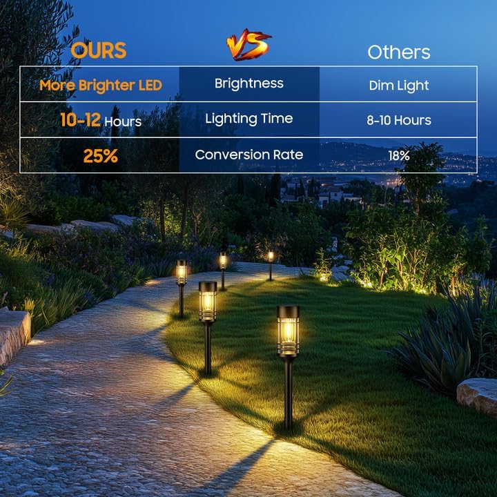 Add charm and eco-friendly brilliance to your garden with this 4-pack of solar-powered outdoor lights. Designed for performance and style, these garden lights use high-efficiency monocrystalline solar panels to deliver warm 2800K lighting all night long. Ideal for pathways, patios, flower beds, and more – a perfect way to light up your outdoor space effortlessly.