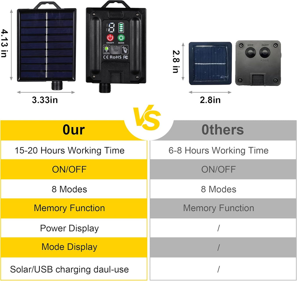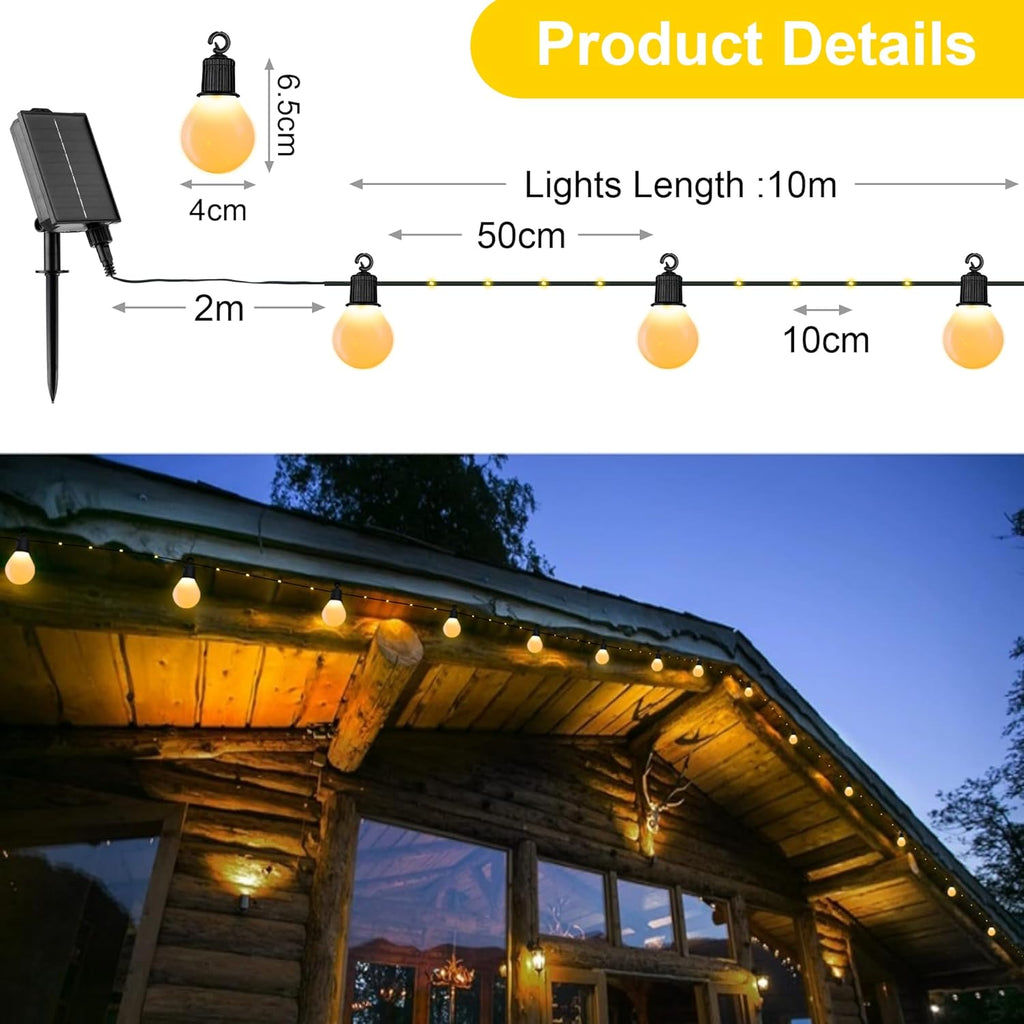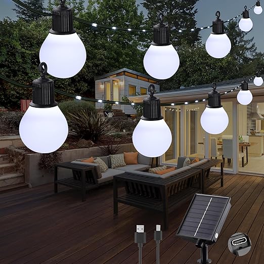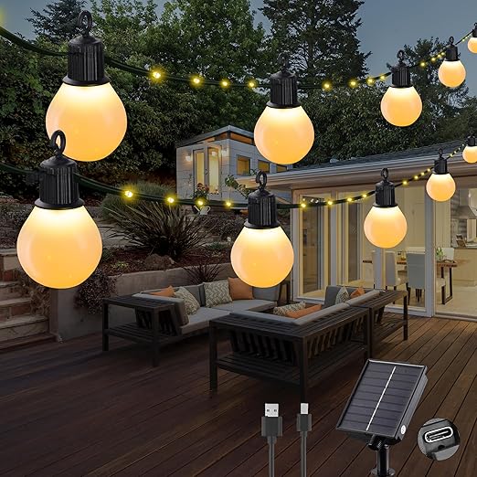 Transform your garden, patio, or outdoor space into a warm and enchanting retreat with our 32.8Ft Solar Garden String Lights. Featuring 100 energy-efficient LEDs, shatterproof G40 bulbs, and dual power options (USB & solar), these lights offer stunning ambience with practical performance. With 8 lighting modes, IP65 waterproofing, and up to 20 hours of runtime, they’re the perfect eco-friendly and decorative solution for any season or occasion.