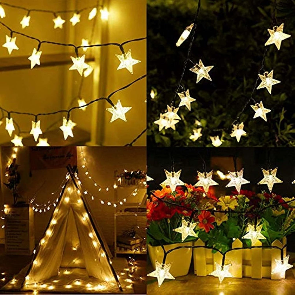 Light up your outdoor spaces with a magical glow using our 23ft 50 LED Star Fairy String Lights. Powered by solar energy and designed for durability, these enchanting clear star-shaped lights provide a warm white illumination perfect for creating a cozy and romantic atmosphere in gardens, patios, weddings, and more. With 8 versatile lighting modes and IP65 waterproof rating, they’re the ideal year-round decoration.
