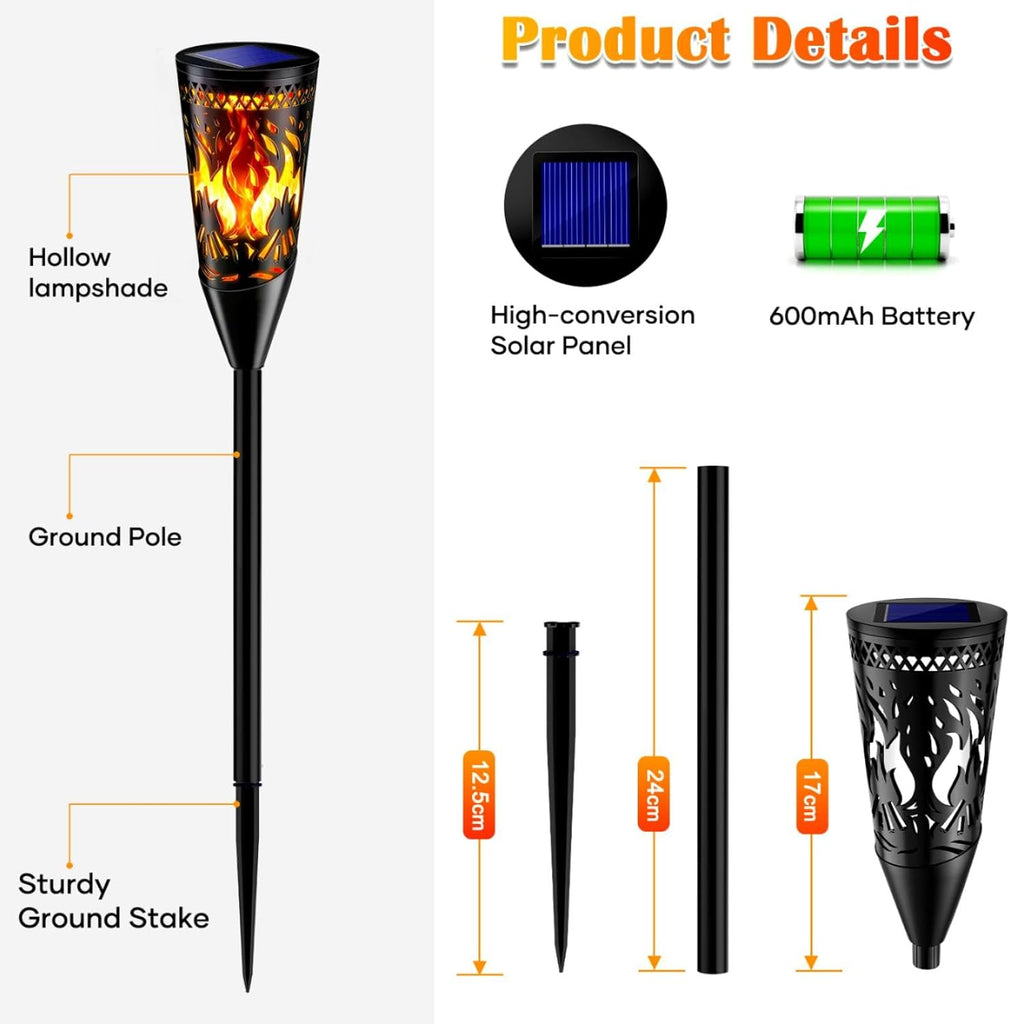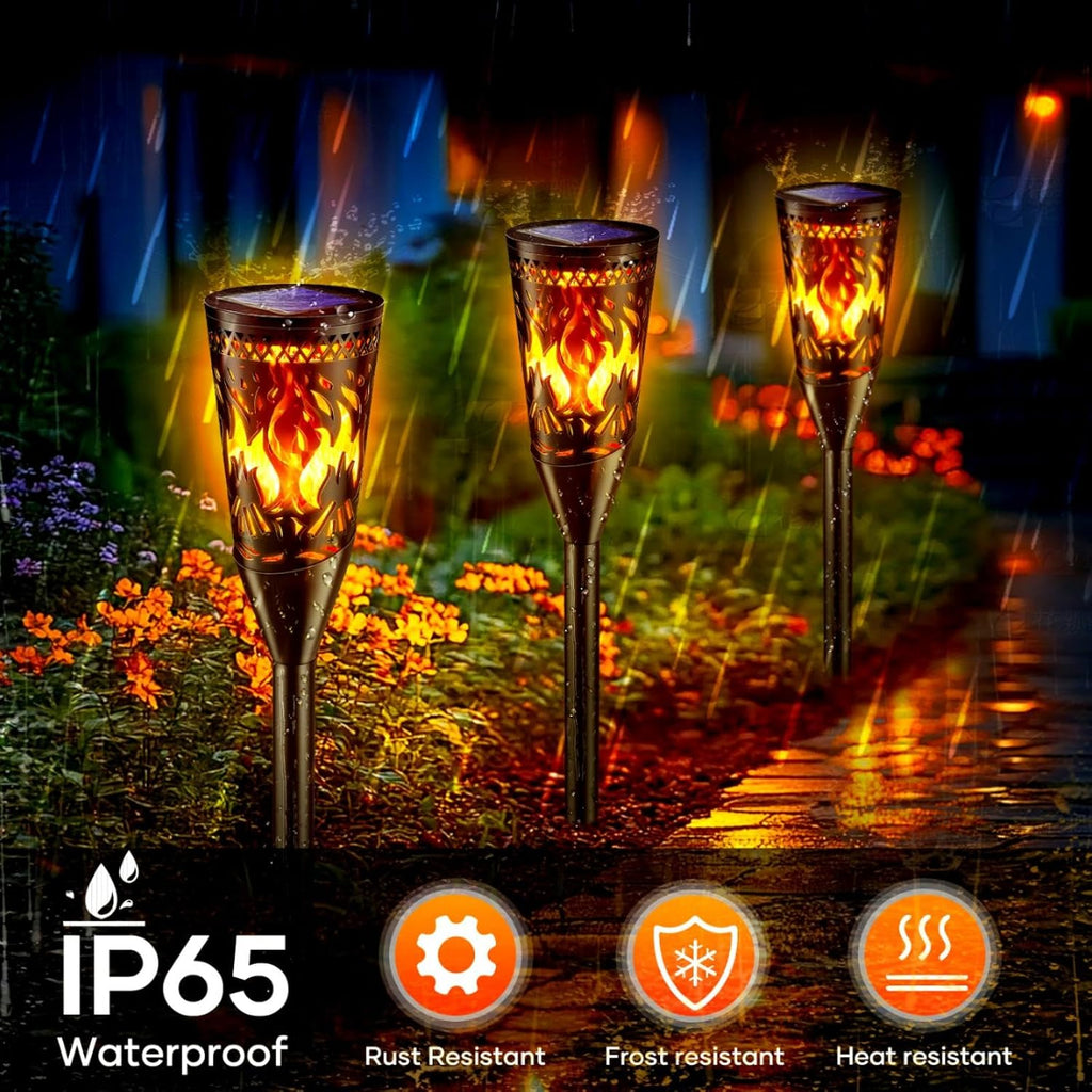 Create a magical outdoor ambiance with these 6 Pack Solar Torch Lights featuring dual lighting modes. With realistic flickering flames and a warm steady glow, these IP65 waterproof solar lights are perfect for enhancing your garden, patio, pathway, or yard décor. Built to endure all UK weather conditions and fully solar-powered, they’re energy-efficient, easy to install, and hassle-free.