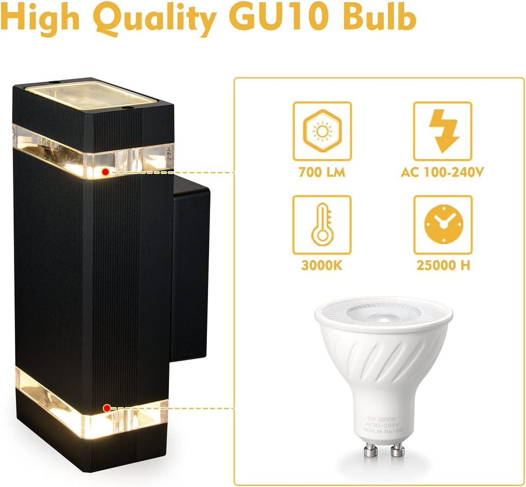 Add elegant and functional lighting to your outdoor spaces with this 2 Pack of Up Down Outdoor Wall Lights. These modern wall sconces are ideal for porches, front doors, or garden areas, providing both up and down lighting for a balanced and inviting glow.