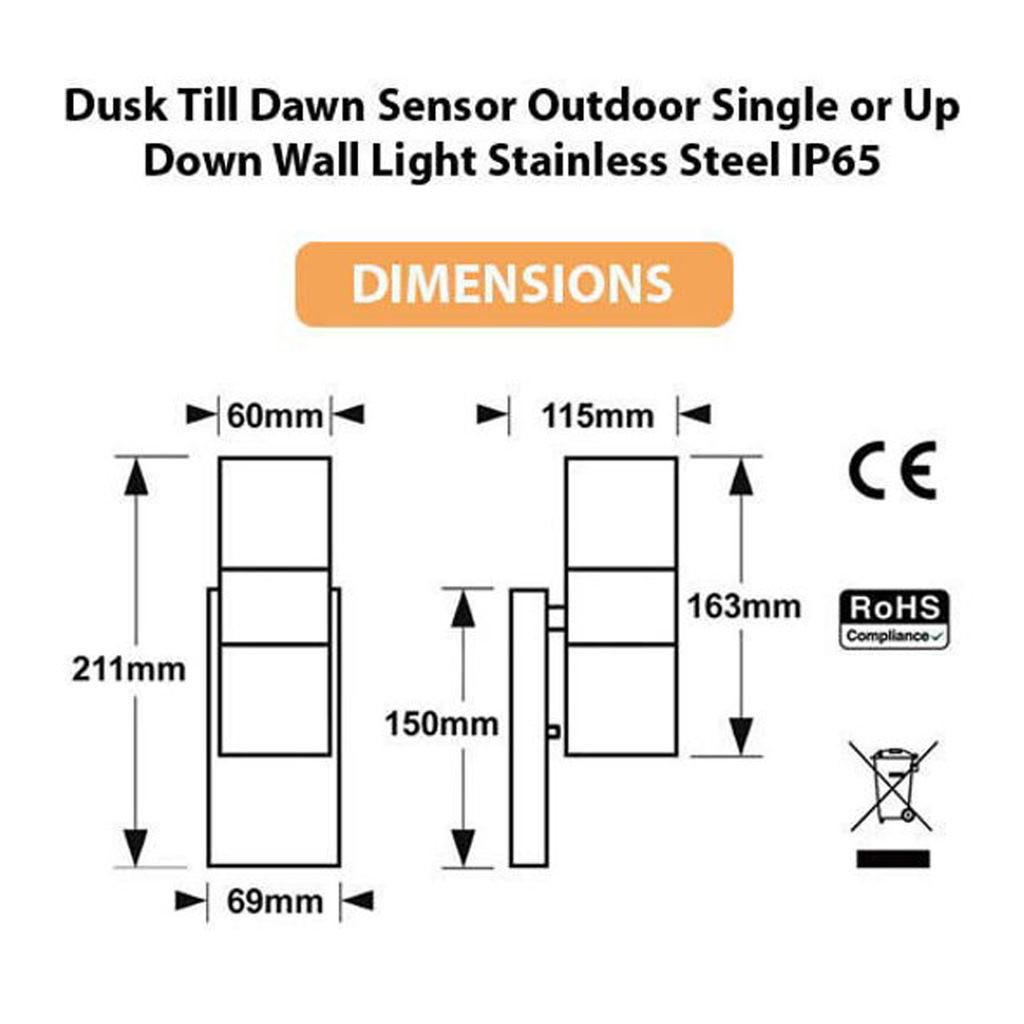 • Type: Up and Down Wall Light with Dusk Till Dawn Sensor