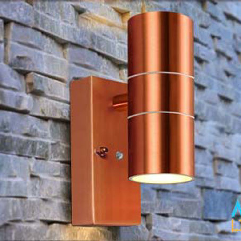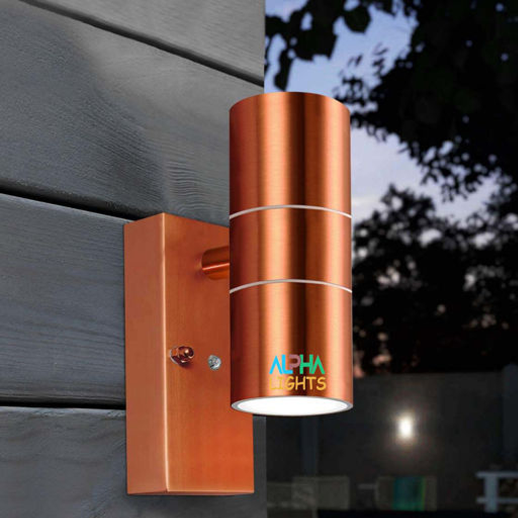 Outdoor Wall Light with Dusk Till Dawn Sensor, Copper Finish, Stainless Steel Up and Down Light