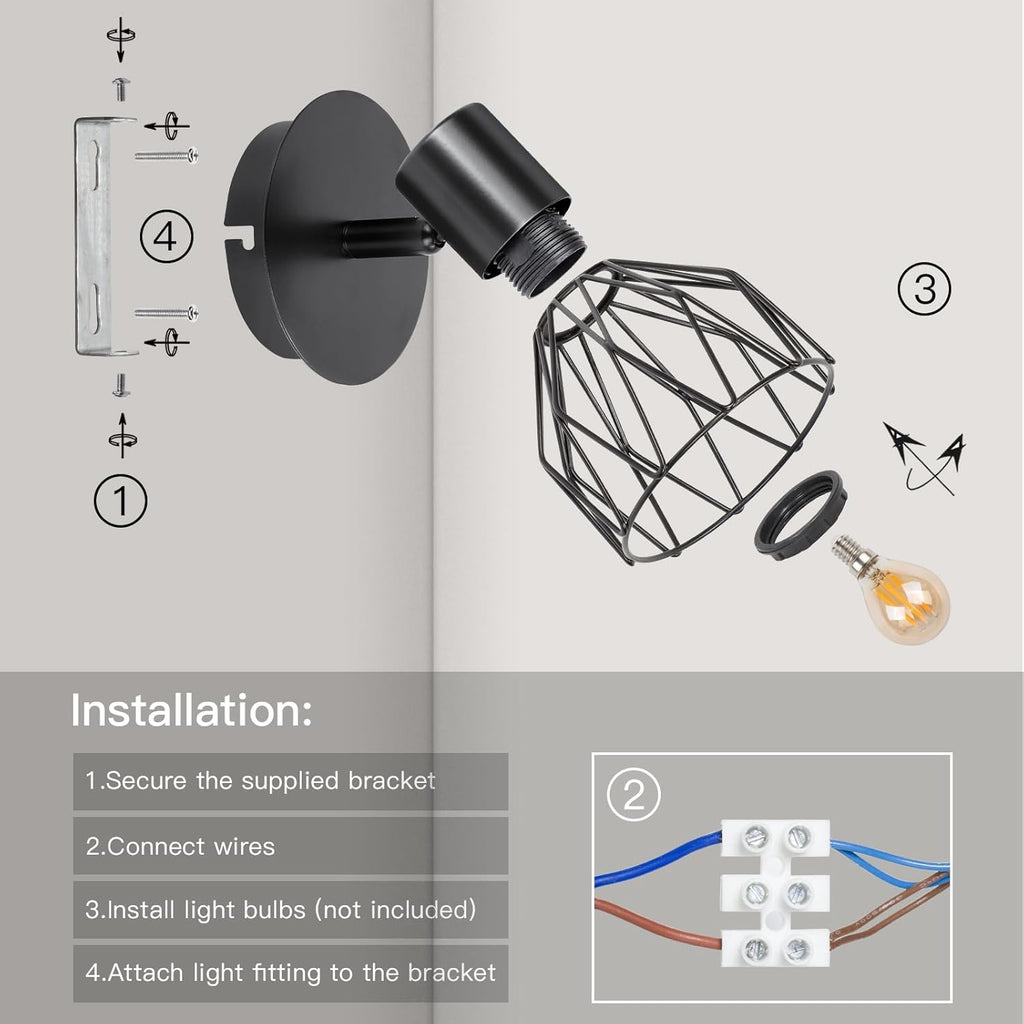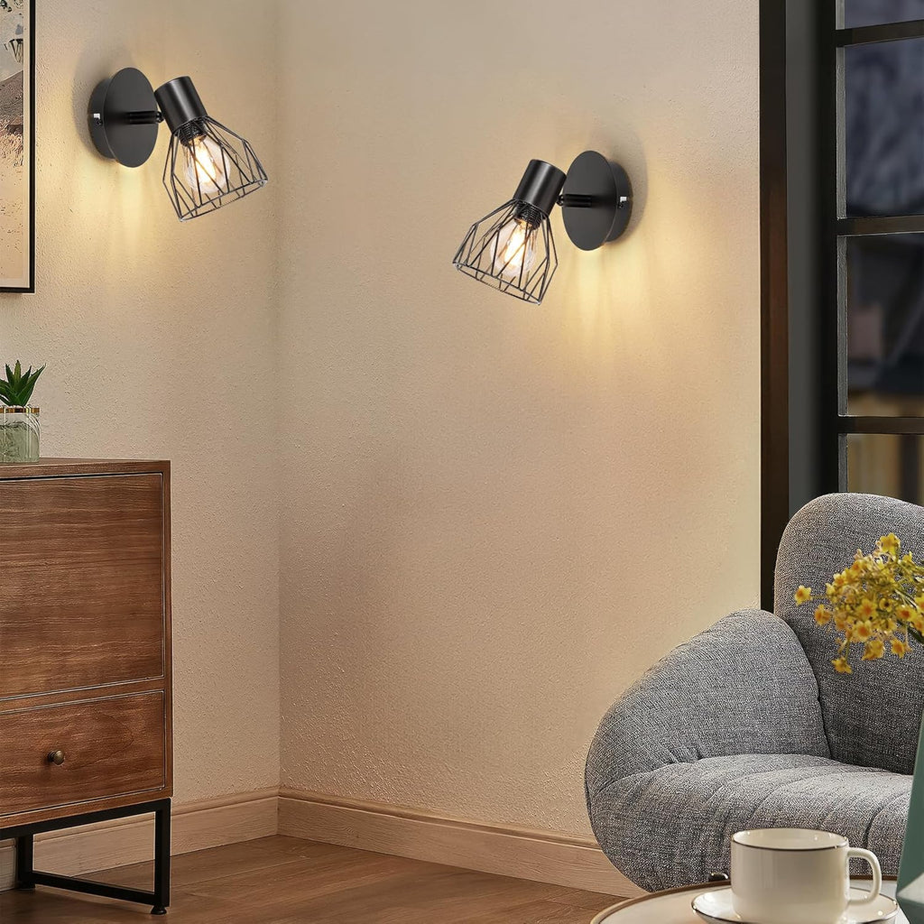 Bring industrial charm and flexible lighting to your space with this 2-pack of Industrial Wall Lights featuring an adjustable wire cage design. Crafted from premium black metal, these durable wall sconces offer a vintage-inspired look combined with practical functionality. The pivoting cage lamp head allows you to direct light exactly where you need it, making them ideal for bedrooms, living rooms, hallways, shops, and more. Designed for use with E14 bulbs (sold separately), these versatile fixtures provide both style and efficiency for your indoor lighting needs.