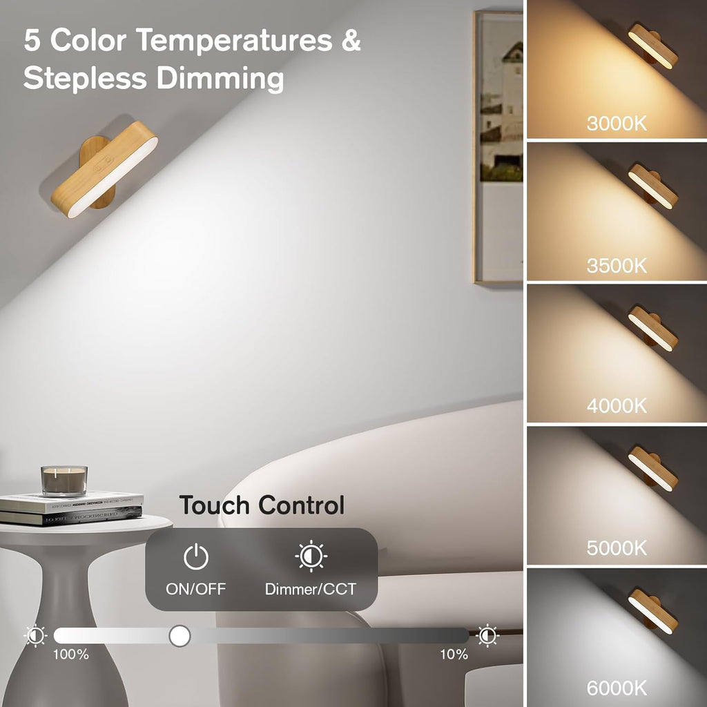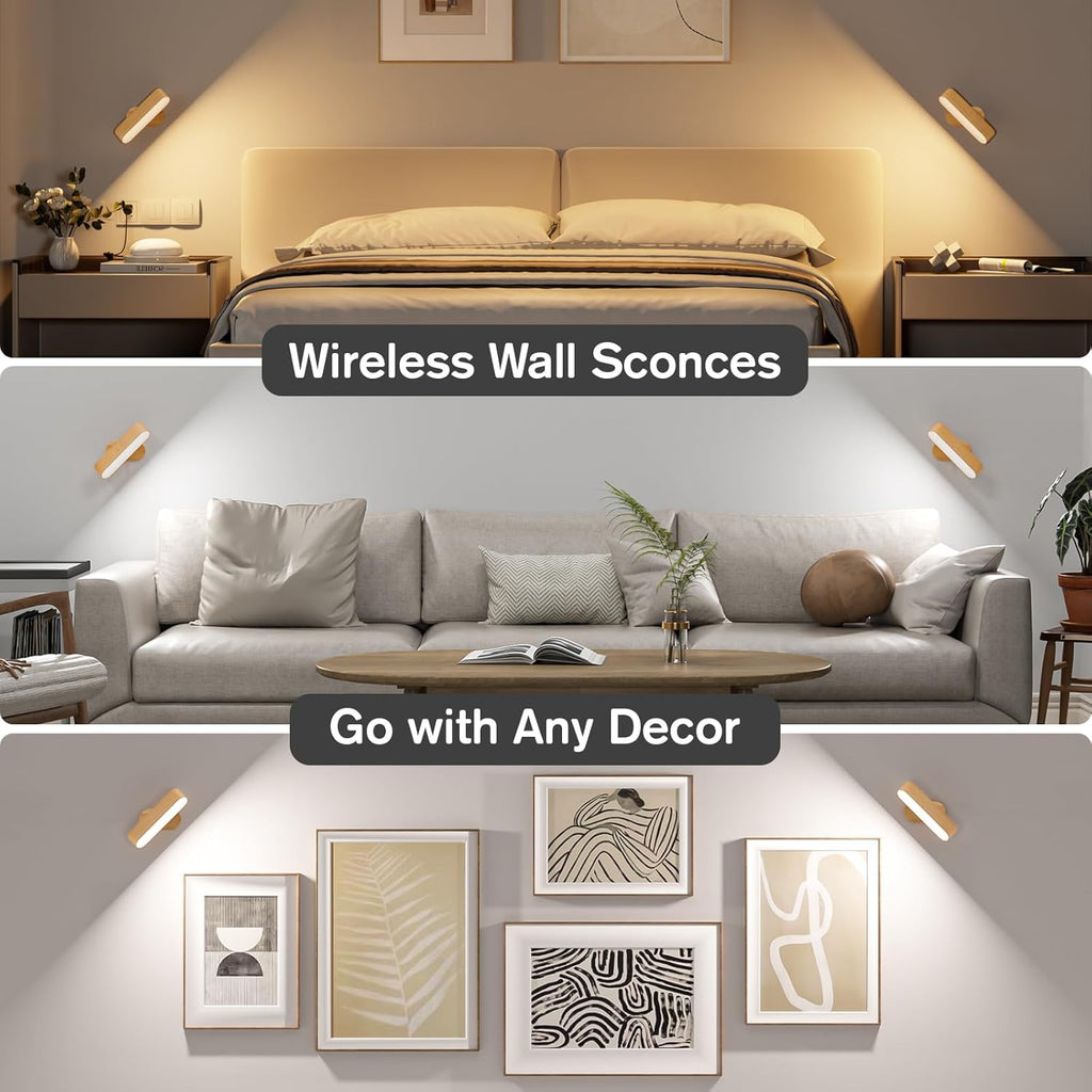 2 × Wireless Wall Sconces (Rechargeable, 5 Dimmable Modes)
