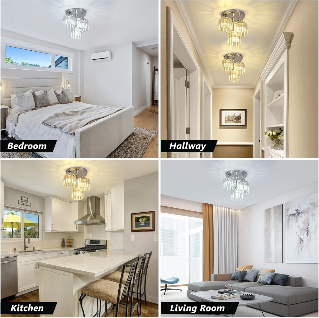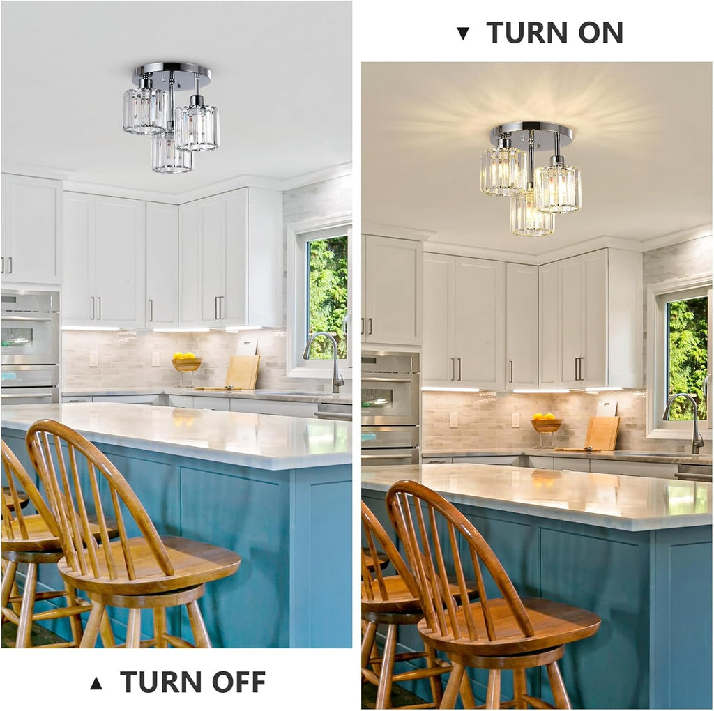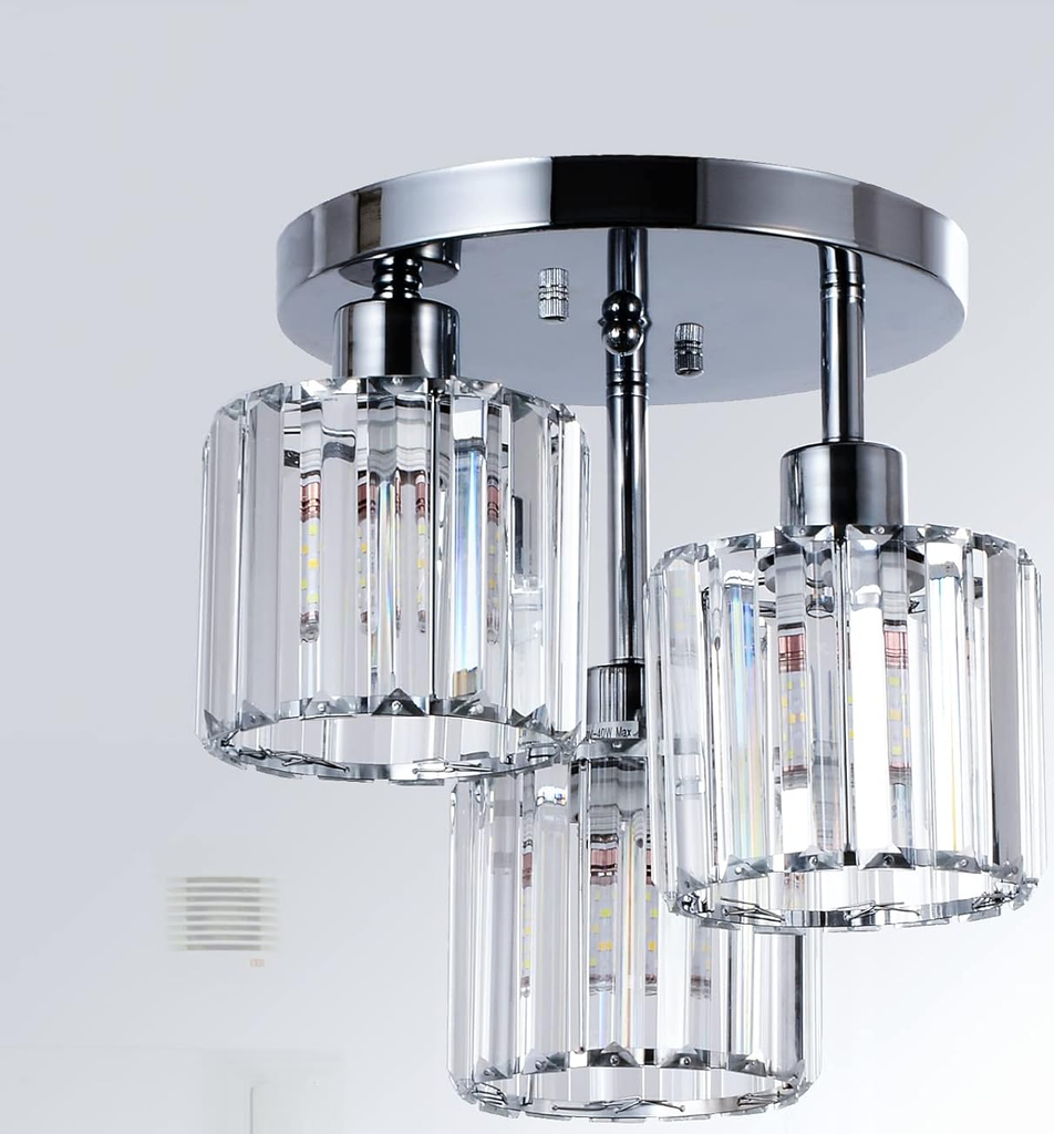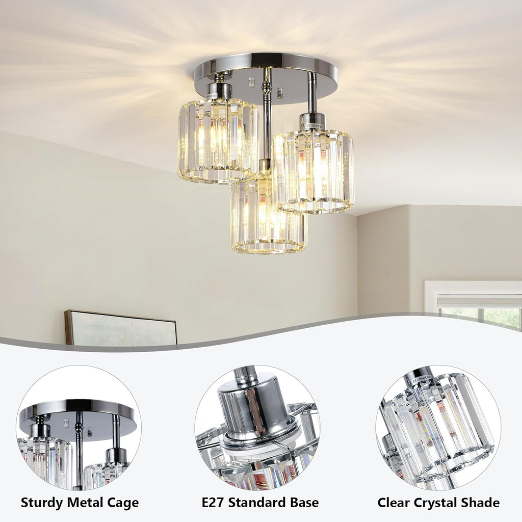 Modern 3-Light Crystal Ceiling Light – Chrome Semi Flush Mount Fixture