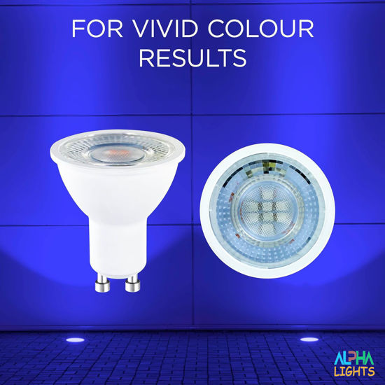 1. Vivid Blue Hue: Our GU10 bulbs emit a rich, vibrant blue color, ideal for decorative lighting in homes, offices, or commercial spaces. Whether you're hosting a themed party, enhancing your decor, or simply seeking to create a calming atmosphere, these bulbs are designed to meet your needs.