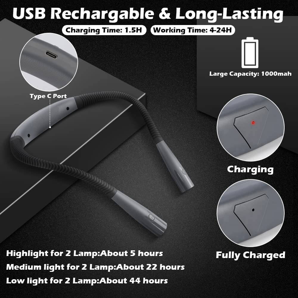 Rechargeable Battery: The neck reading light is designed to be rechargeable, allowing you to use it again and again without the need for replacing batteries. The rechargeable battery provides ample power to keep the light shining brightly for hours on a single charge.