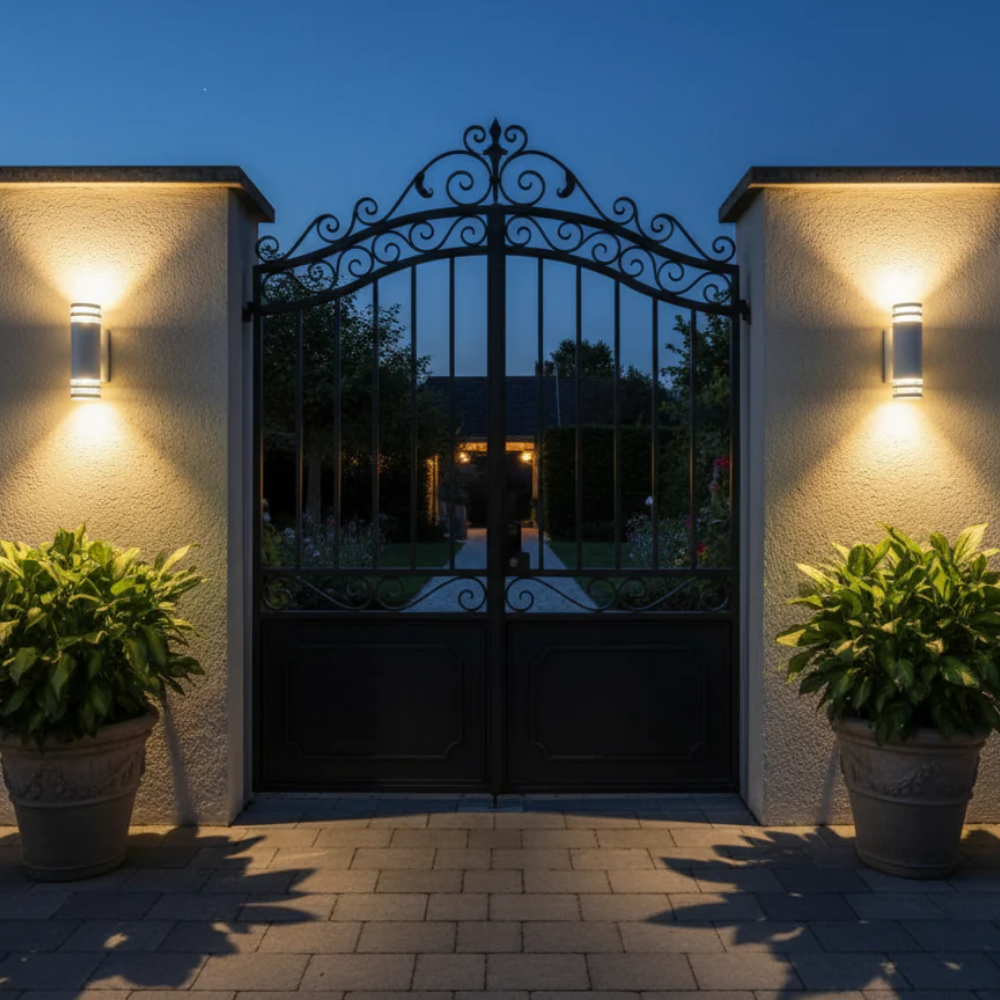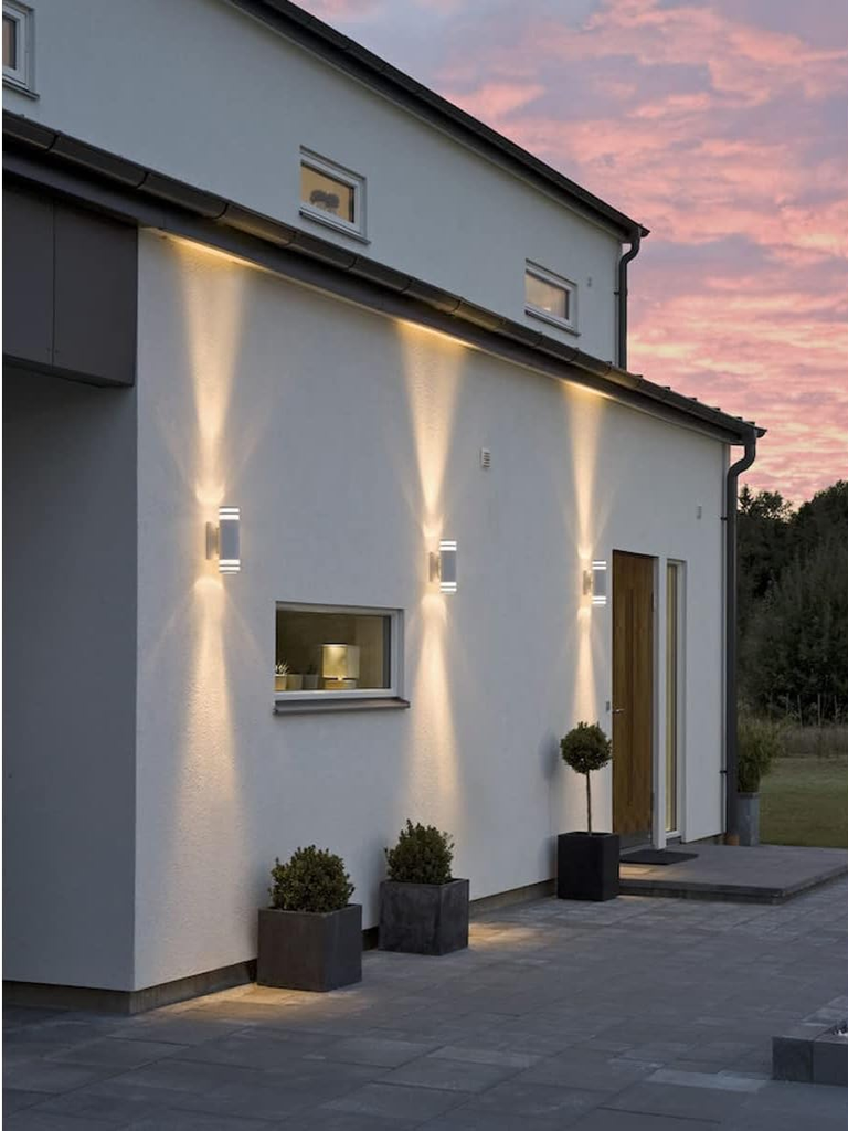 Stylish and durable, these mains-powered outdoor up and down wall lights feature a modern double-beam design. Built to last, they use an E27 base and are perfect for enhancing entrances, patios, or exterior walls. Their sleek black finish complements any contemporary outdoor setup.