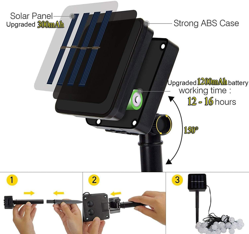 Solar Crystal Ball String Lights – 50 LED, 24FT, Waterproof