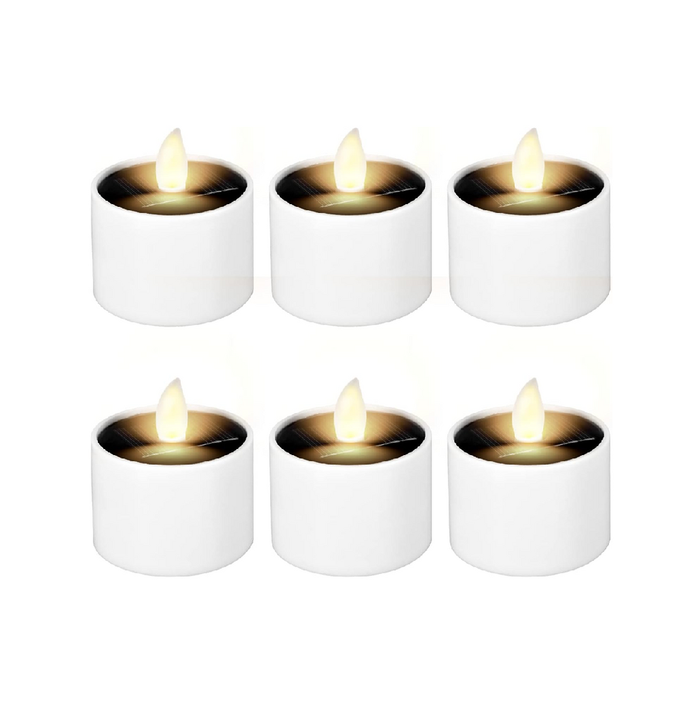 Add warmth and elegance to your home or outdoor space with these 6 Pack Solar LED Tea Lights. Designed to mimic the gentle flicker of real candles, these flameless lights create a cozy, romantic, and safe ambience—perfect for weddings, dinners, or garden parties.