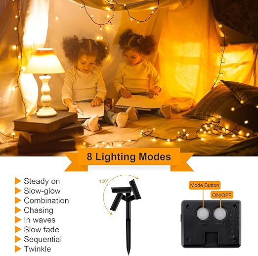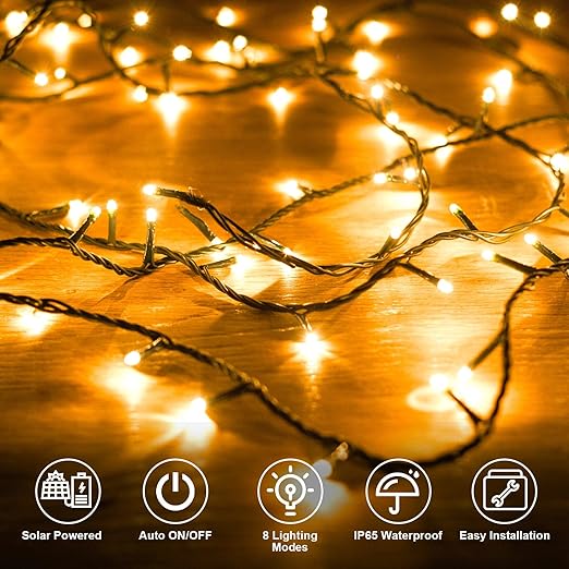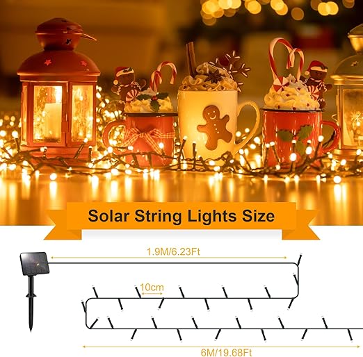 Create a glowing atmosphere with the 60LED Solar Fairy Lights. At 6 meters long, these warm white lights offer 8 lighting modes and IP65 waterproofing, making them ideal for outdoor or indoor use. Efficient solar power ensures eco-friendly illumination throughout your space.