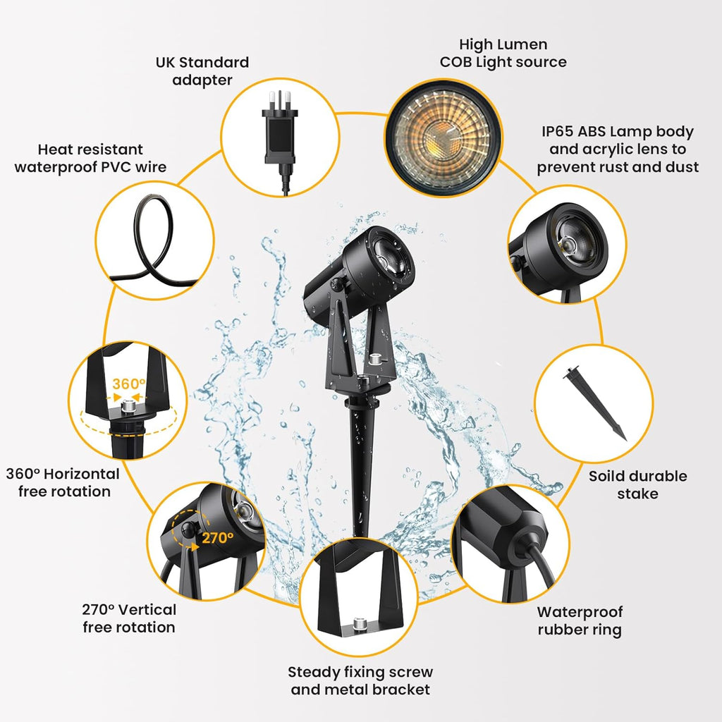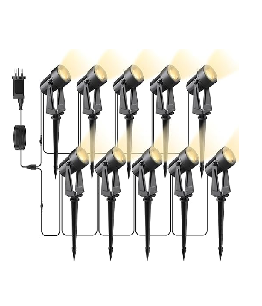 Brighten up your outdoor space with these powerful and safe Mains-Powered LED Garden Spotlights. Designed for lasting performance and wide coverage, this 10-in-1 spotlight kit delivers warm 3000K illumination across lawns, pathways, fences, and patios. Unlike solar lights, these plug-in garden lights offer consistent brightness regardless of weather conditions. With IP65 waterproofing, low-voltage safety, and easy DIY installation, they are perfect for both decorative and security lighting in any outdoor setting.