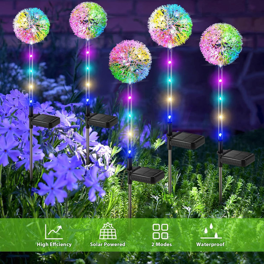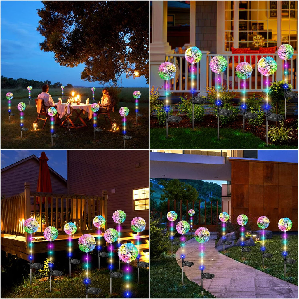 Transform your garden into a magical wonderland with these Solar Dandelion Garden Lights. Designed with a blooming dandelion shape, they are decorative by day and beautifully illuminated at night. Each flower features 16 colourful LED beads spread across transparent stems, producing a stunning glow that enhances your garden, lawn, or pathway.