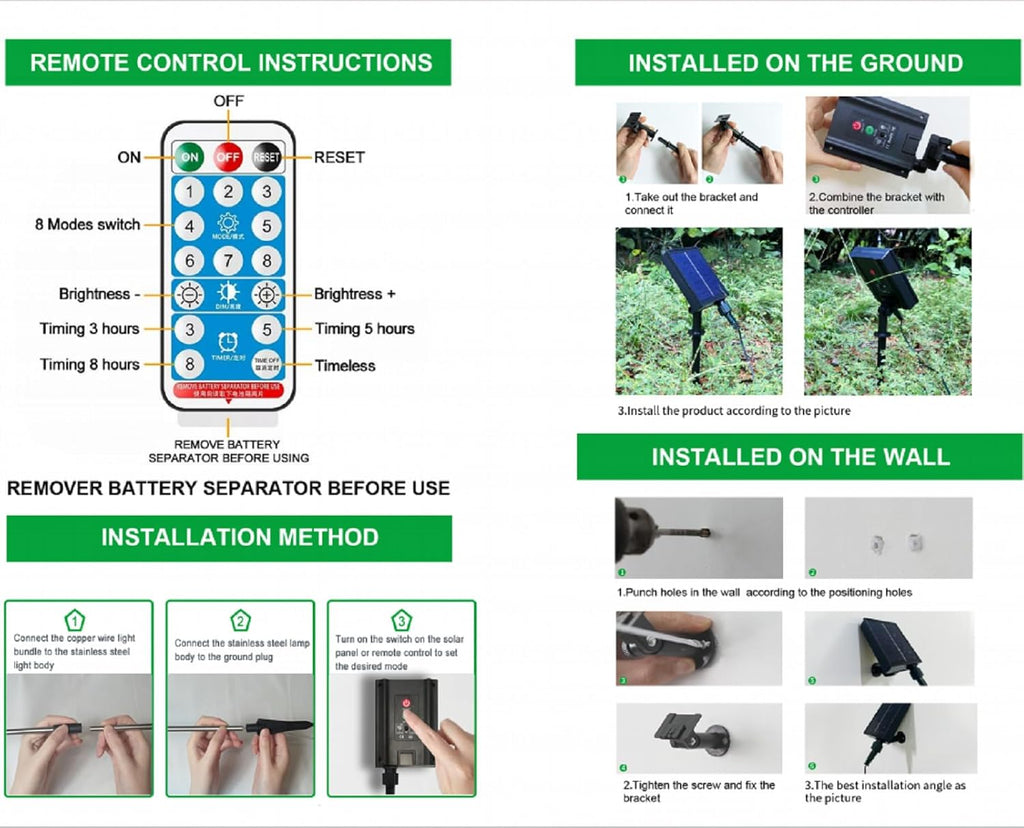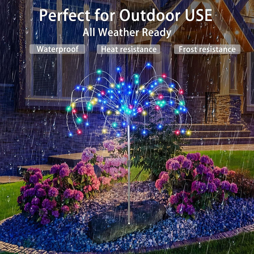 Add a spark of creativity and brilliance to your garden with these Solar Garden Firework Lights. Featuring a stunning 3-piece set with 120 LEDs on each lamp, these fireworks-inspired lights are perfect for transforming your outdoor space. With a remote control, adjustable brightness, 8 lighting modes, and a flexible copper wire design, these solar-powered lights are both artistic and practical—ideal for any occasion, rain or shine.