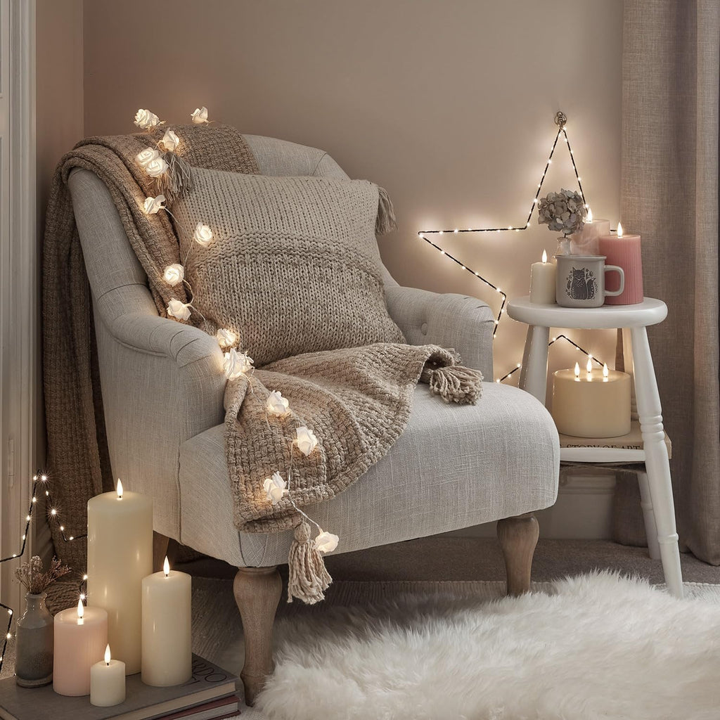 Add elegance and romance to any space with these Indoor White Rose String Fairy Lights. Featuring 20 warm white LEDs delicately wrapped inside realistic foam rose petals, these lights create a soft and inviting glow perfect for bedrooms, living rooms, parties, or special events.