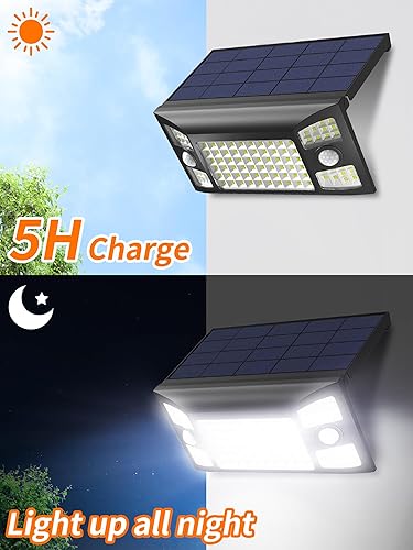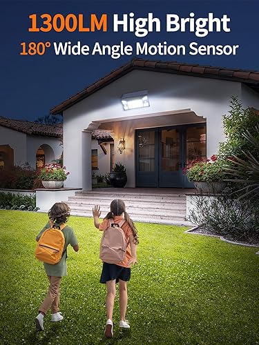 Add reliable security lighting to your home with the Motion Sensor solar Wall light. This outdoor wall-mounted light features 1300 lumens of cool white illumination (6000K) with a wide 270° motion detection range up to 26 feet. Made with durable ABS and aluminum alloy and rated IP65 waterproof, it’s ideal for gardens, garages, and walkways.