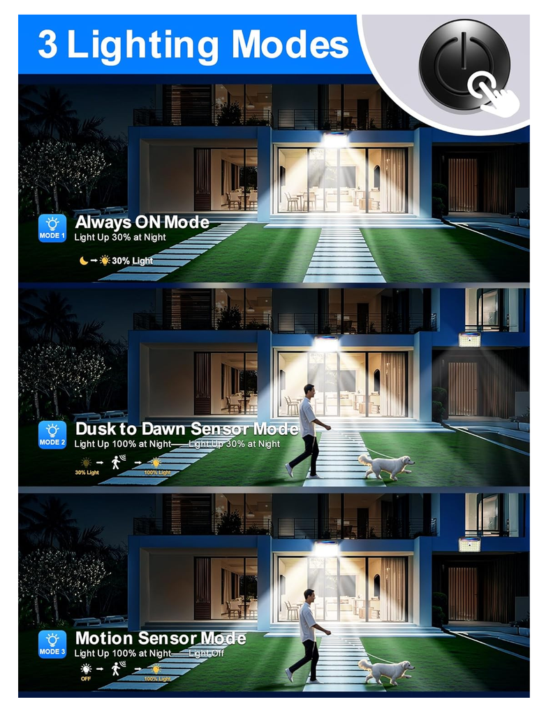 Lighting Modes Always-On, Dim Sensor Mode, Motion-Activated Mode