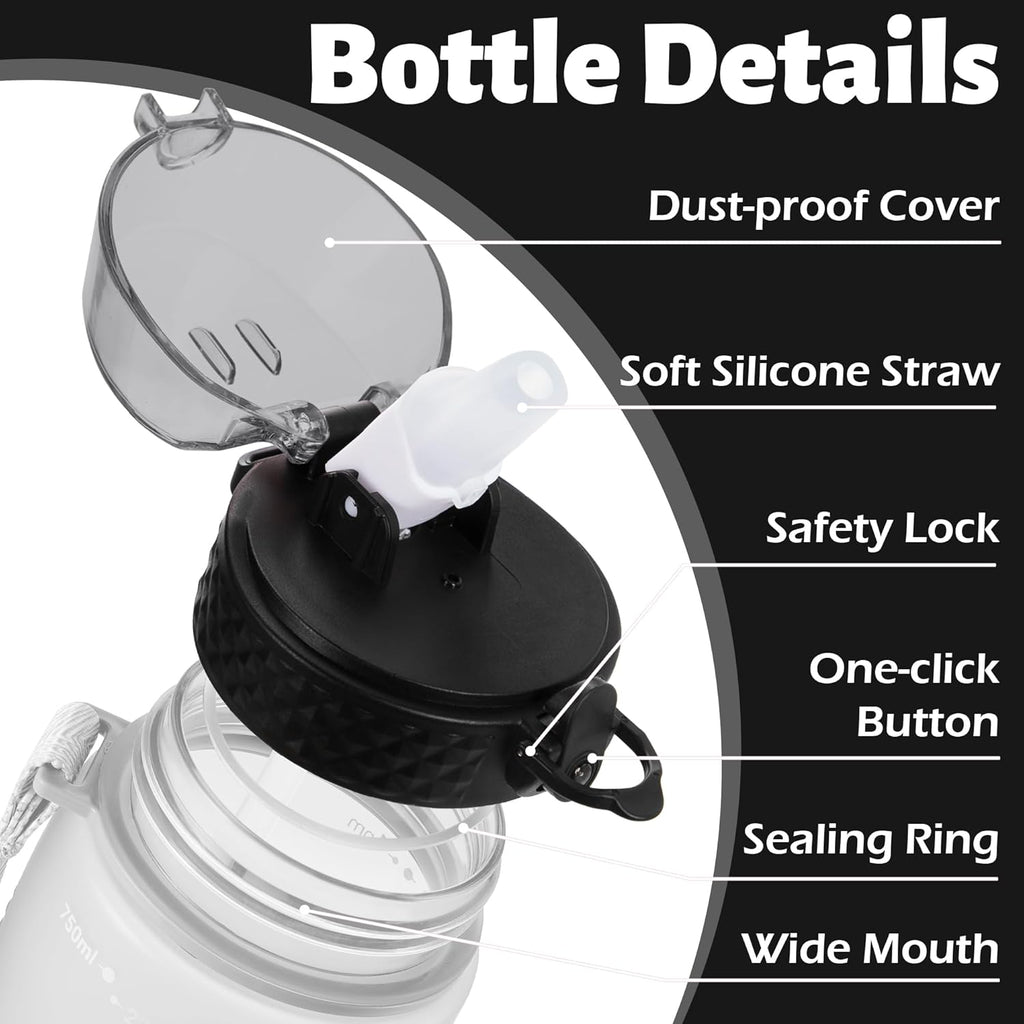 Stay hydrated on the go with this 50ml/25oz Tritan Water Bottle, perfect for gym, school, sports, and travel. Made from BPA-free, durable Tritan material, it is safe, lightweight, and reusable for everyday use. The built-in straw allows easy sipping during workouts or activities, while time markings help track daily water intake. Designed to be leakproof, this bottle ensures no spills in bags or backpacks. Its versatile design makes it ideal for adults, kids, men, and women.
