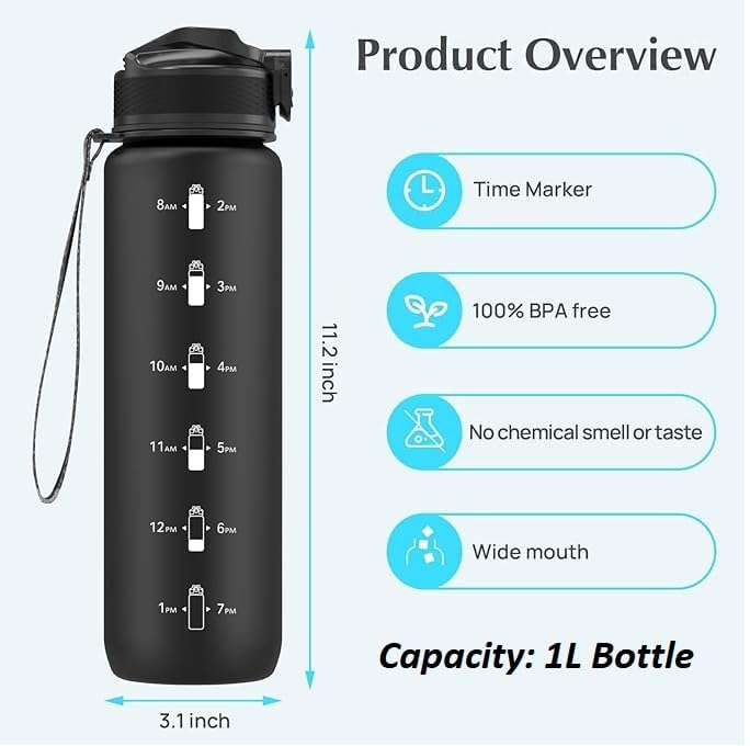 Stay refreshed and motivated with this premium sports water bottle, available in 1L and 500ml sizes. Made from BPA-free Tritan plastic, it’s safe, durable, and eco-friendly. The time marker design helps you track your hydration goals throughout the day, while the leakproof lid prevents spills during workouts or travel. Perfect for gym sessions, school, office, or outdoor adventures, this lightweight and reusable bottle ensures you stay hydrated anywhere. Its ergonomic design fits comfortably in your hand and bag, making it the perfect hydration companion for active lifestyles.