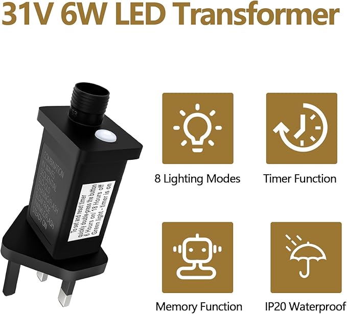 Easily switch between 8 lighting modes by pressing the button on the transformer. Equipped with a memory function, it retains the last selected mode even after being powered off, saving you the hassle of resetting it every time.