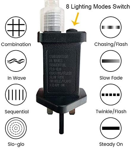 • 8 Lighting Modes: Includes steady, twinkle, fade, wave, and more