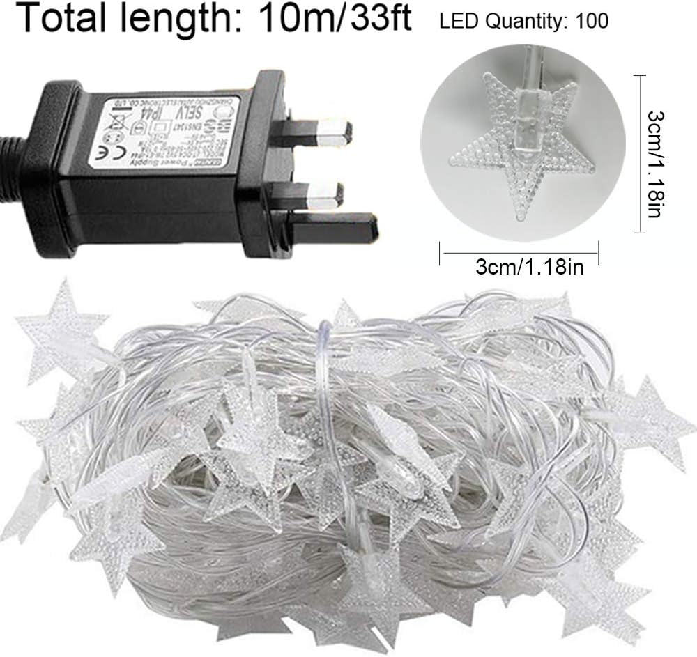33ft Star Fairy Lights, 100 LEDs, 8 Modes, Plug-in