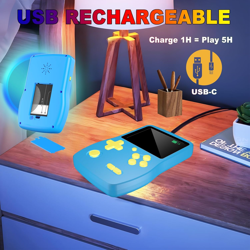 Preloaded with 139 classic video games, this console brings back timeless fun in one compact device. No downloads or setup required—simply switch it on and start playing instantly. The built-in rechargeable battery offers long-lasting playtime and recharges easily via USB, making it perfect for travel, road trips, and quiet play at home.