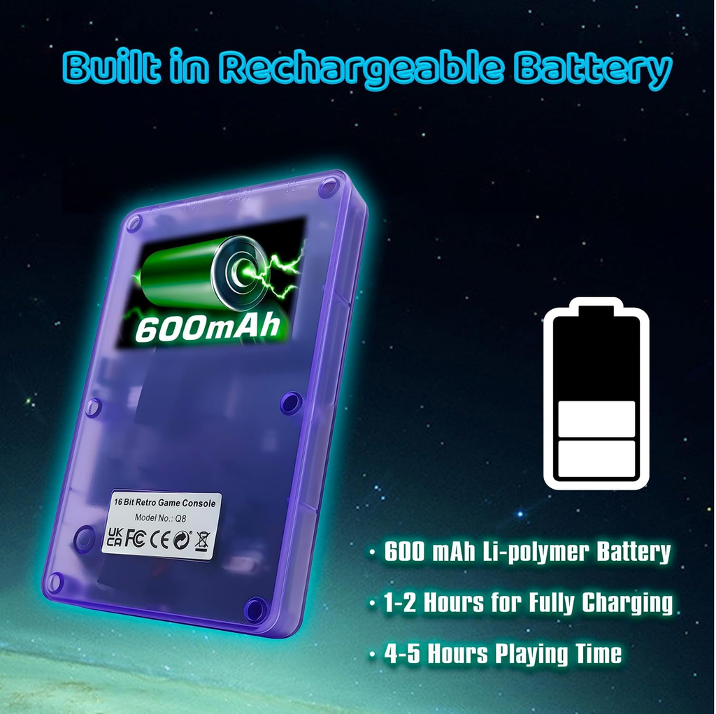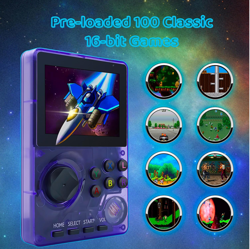 Experience classic gaming on the go with the Retro Handheld Game Console, a compact, travel-friendly video game system preloaded with 100 nostalgic 16-bit games. Designed for both boys and girls, this handheld console brings timeless fun in a modern portable design.