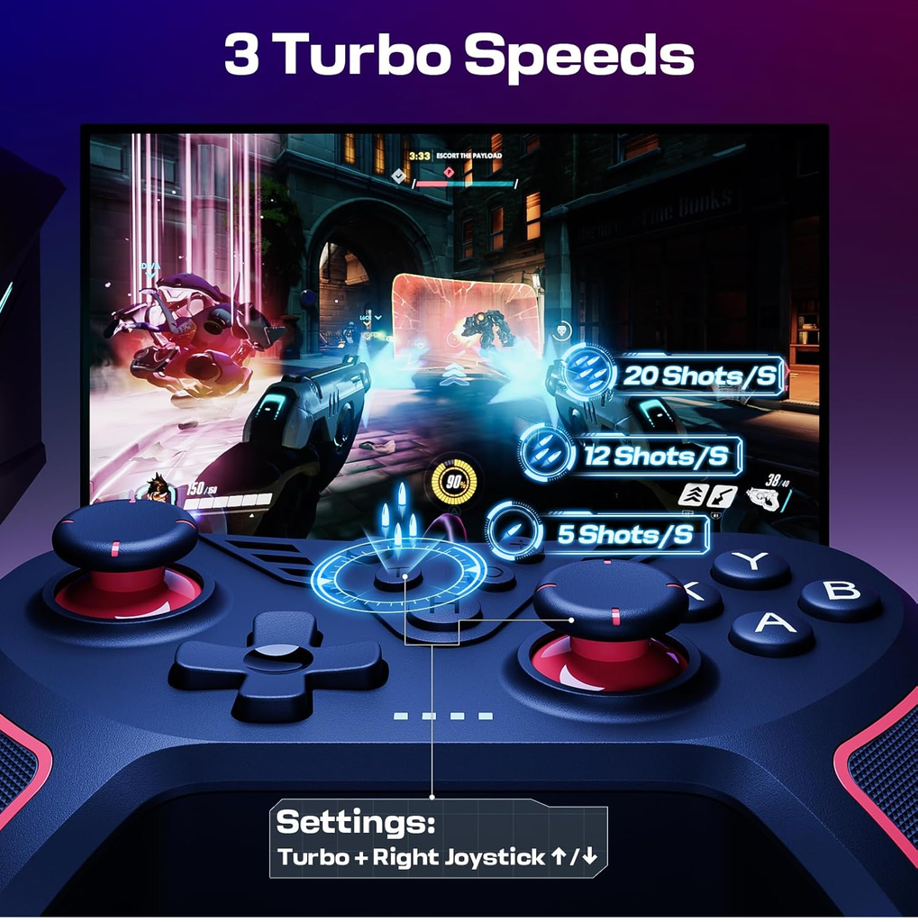 The ergonomic design includes textured anti-slip grips to ensure comfort during long gaming sessions, while the responsive triggers and analog sticks provide pinpoint accuracy for both casual and competitive play.