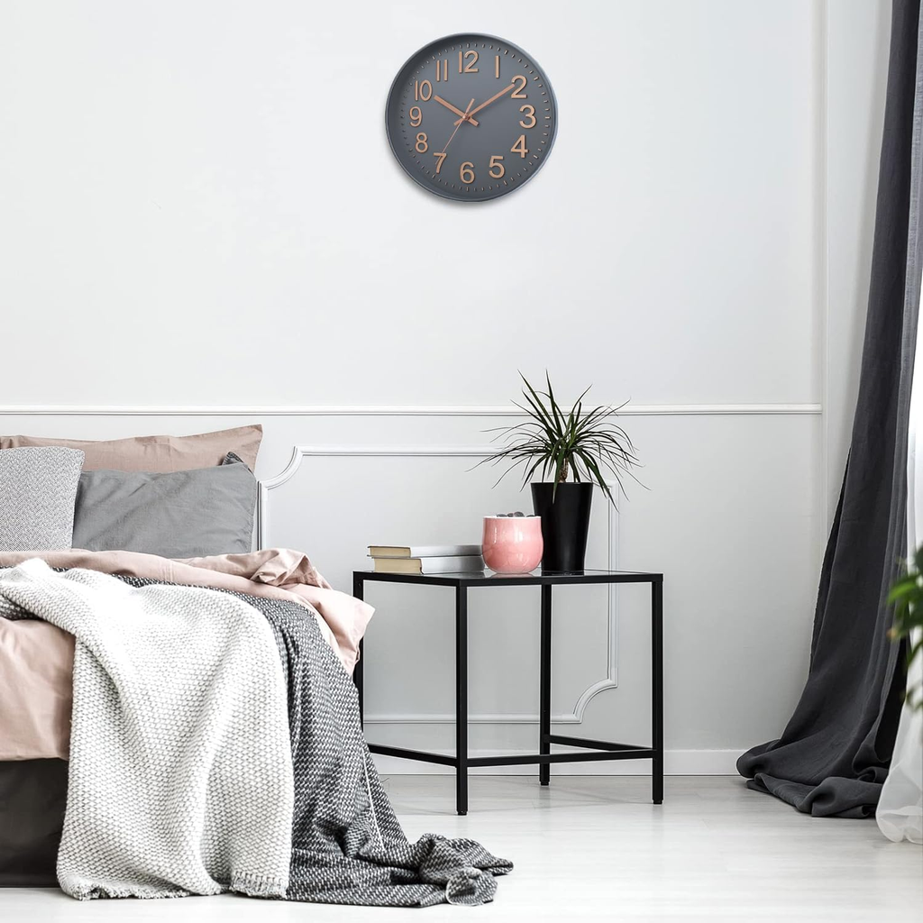 Enhance your home or office décor with this 12-Inch Silent Modern Wall Clock, designed for quiet, precise, and stylish timekeeping. Featuring a sleek white face with grey and rose gold accents, this clock combines modern elegance with functionality, making it a versatile addition to any room.