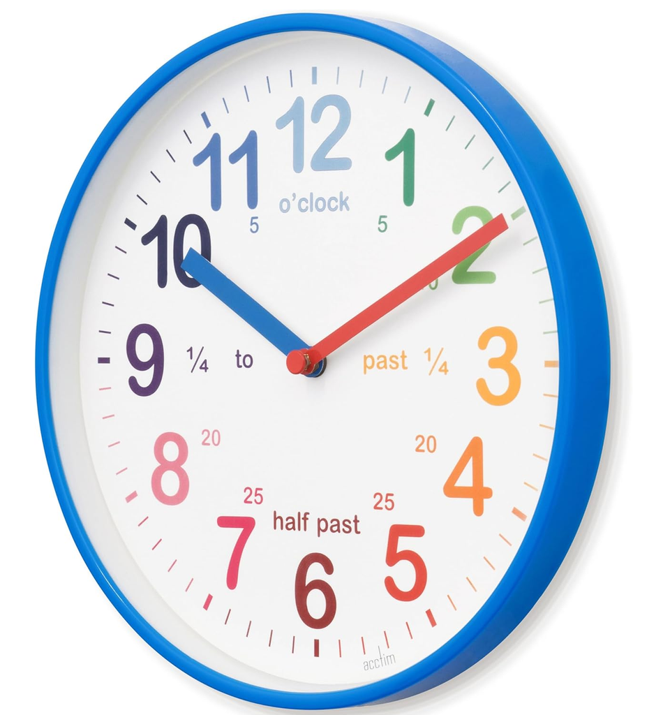 Powered by a reliable quartz movement, this clock ensures accurate timekeeping while being completely silent and non-ticking, so it won’t disturb learning or sleep. Its lightweight design allows for easy wall mounting, while the playful blue frame adds a cheerful touch to any space.