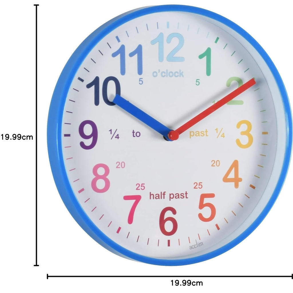Help your children learn to tell time easily with this Kids Teaching Wall Clock. Designed with a colorful rainbow dial and clear quarter-hour markers, this clock makes learning fun and engaging. The large numerals and contrasting hands provide excellent visibility, ideal for kids’ bedrooms, classrooms, or playrooms.