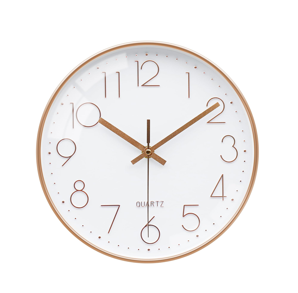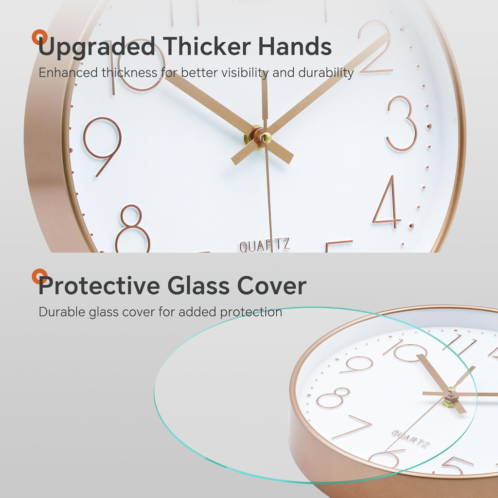 Elevate your home décor with the Rose Gold & White 10-Inch Silent Wall Clock, a perfect blend of elegance, simplicity, and functionality. This modern timepiece features a sleek white face with metallic rose gold accents, adding a touch of luxury and warmth to any room.