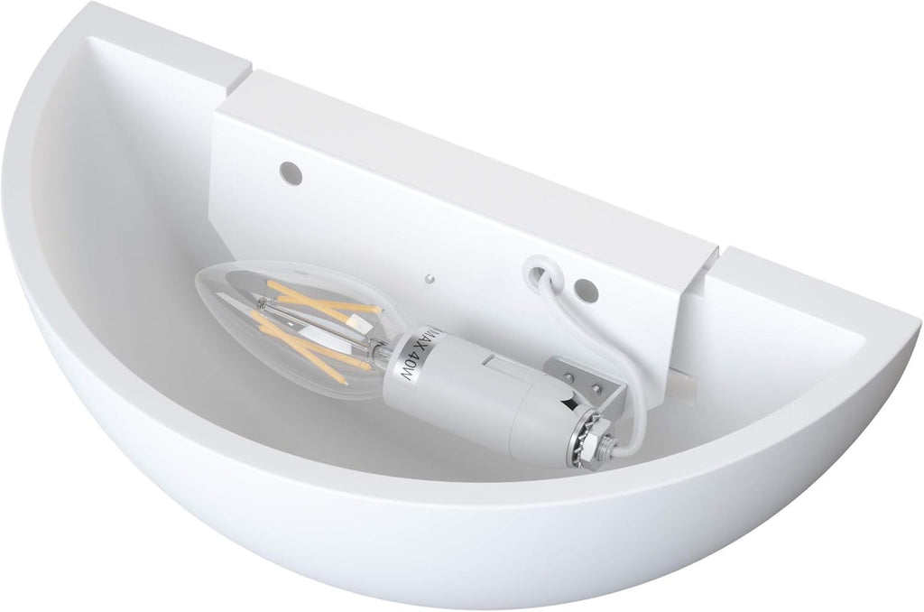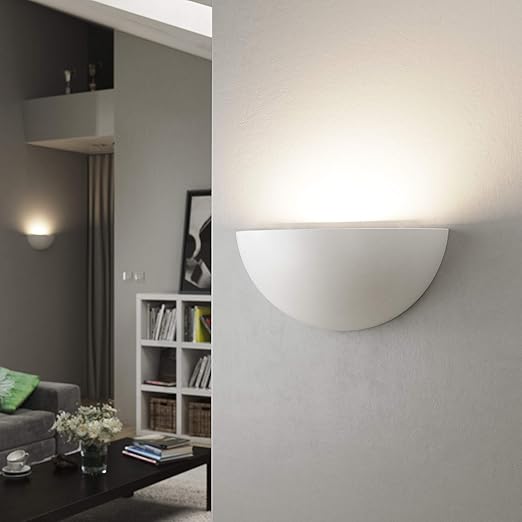 Create stunning ambient lighting with the Half Moon Modern Wall Washer Uplight. Crafted from gypsum plaster with a paintable white finish, this sconce directs light upwards to wash your walls with warm, decorative illumination. Includes a dimmable LED E14 SES warm white bulb for immediate use.
