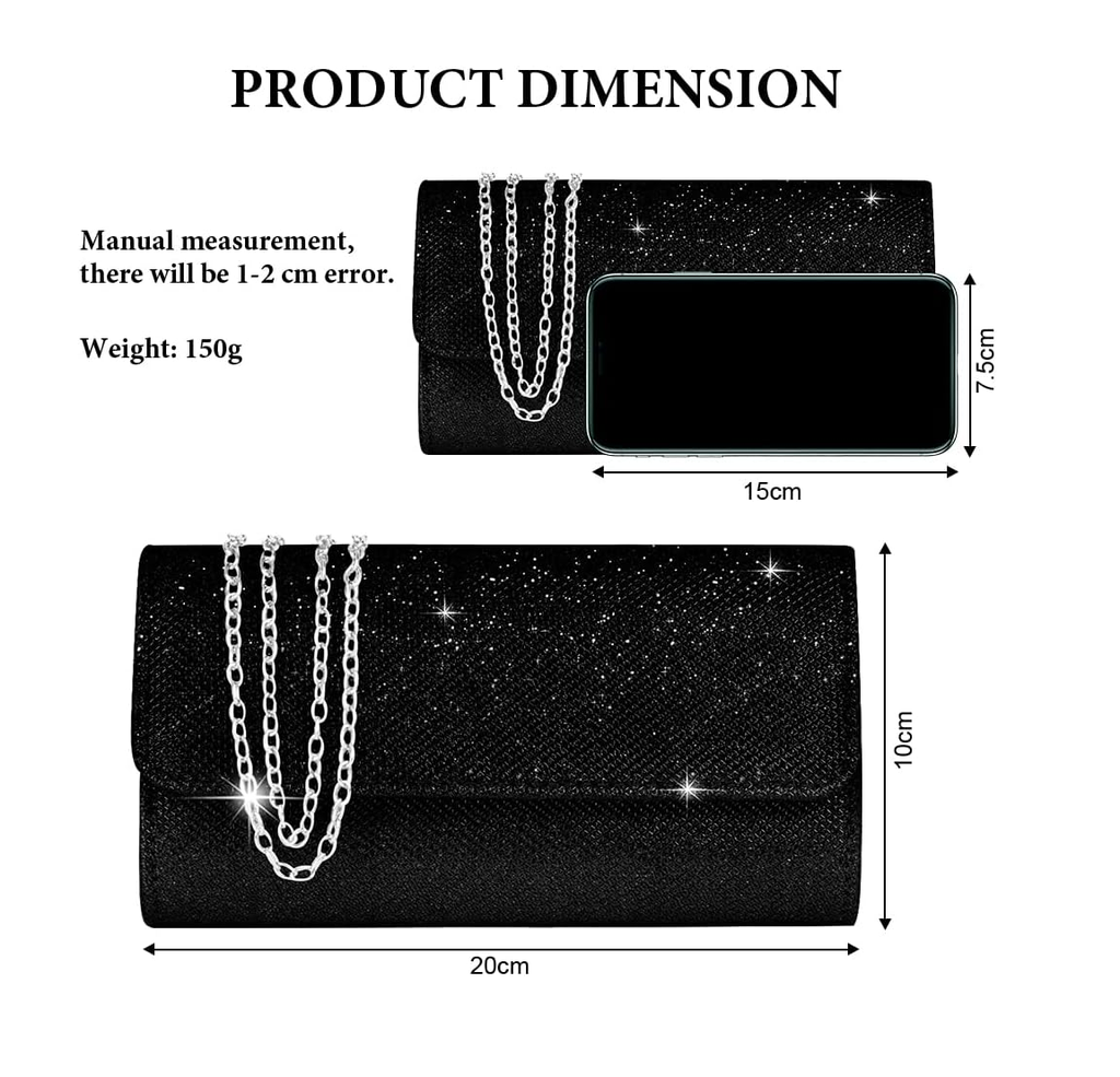 Add sparkle and charm to your evening look with this beautifully designed clutch bag — the perfect blend of glamour, practicality, and style.